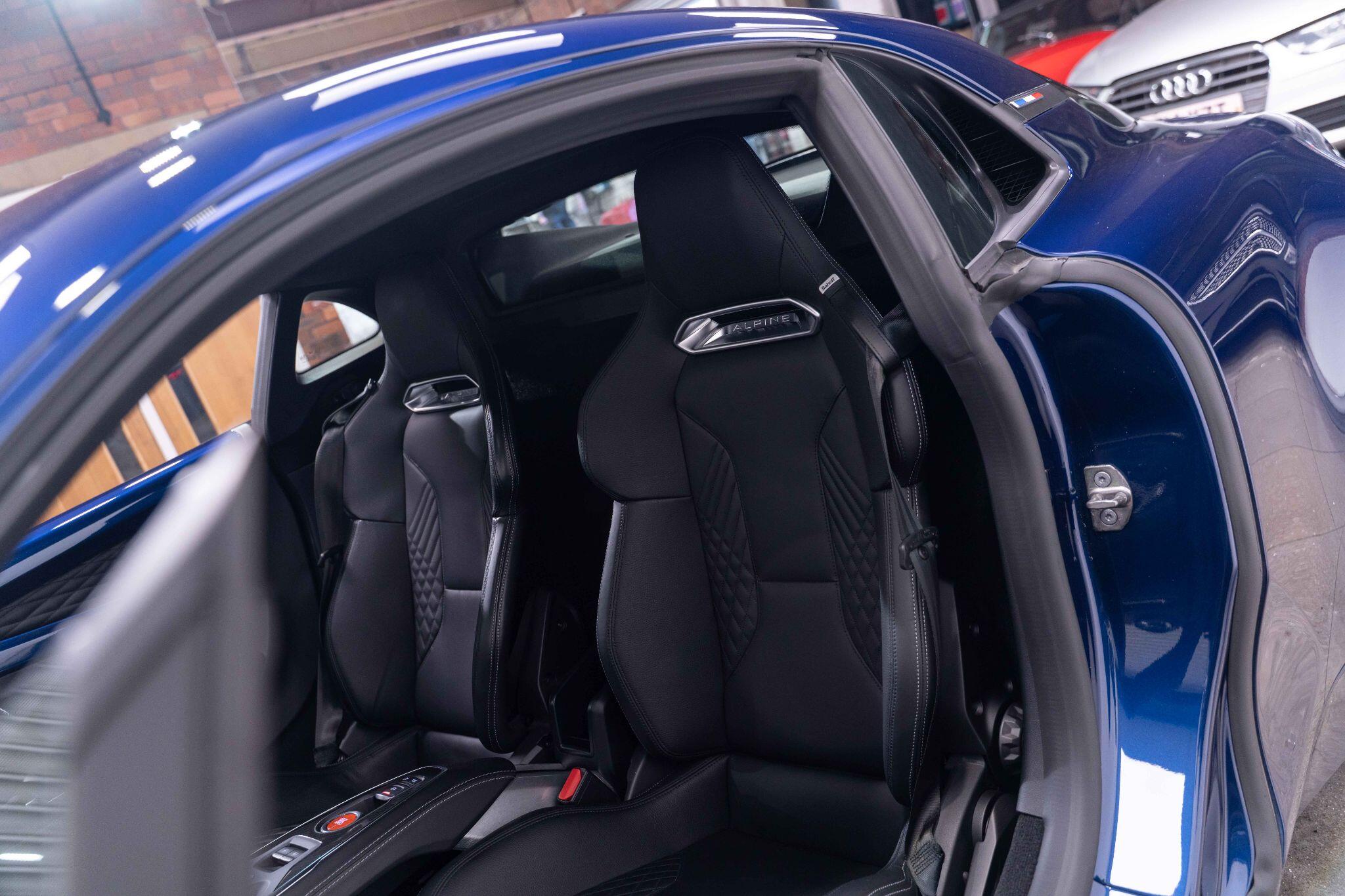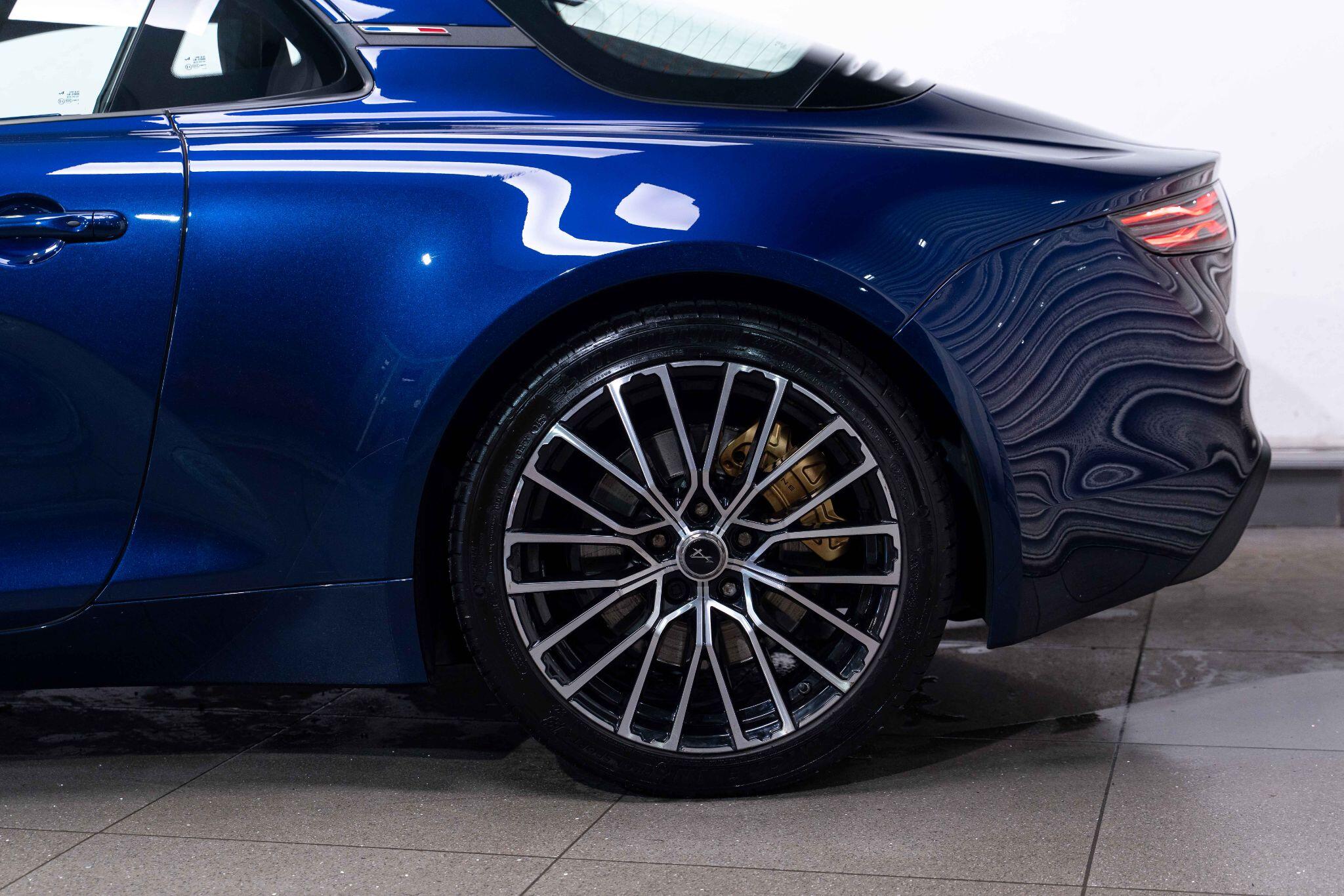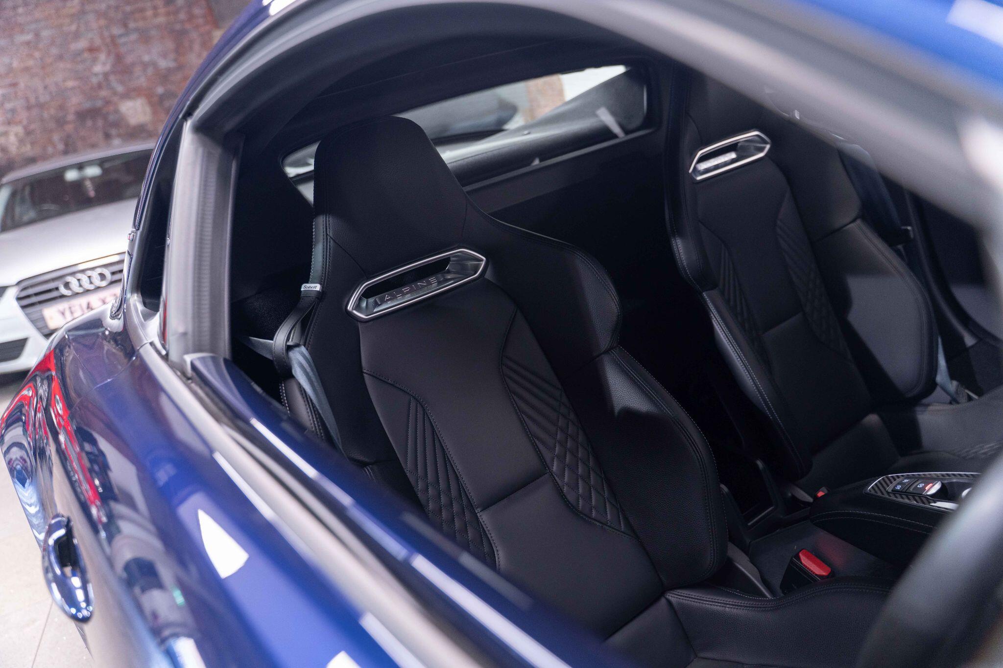 This 2024 Alpine A110 Turbo GT is a superb example, having had only one owner since new. This striking GT trim model is powered by a responsive 1.8 litre petrol engine, meeting Euro 6 emission standards. It sits confidently on 18 inch Grand Prix alloy wheels, featuring an eye catching black diamond cut finish, complemented by black surrounds for the front headlights and golden Brembo brake calipers. Inside, you'll find a premium Focal audio system, ensuring an exceptional sound experience, and a floormat proudly displaying the Alpine logo.
