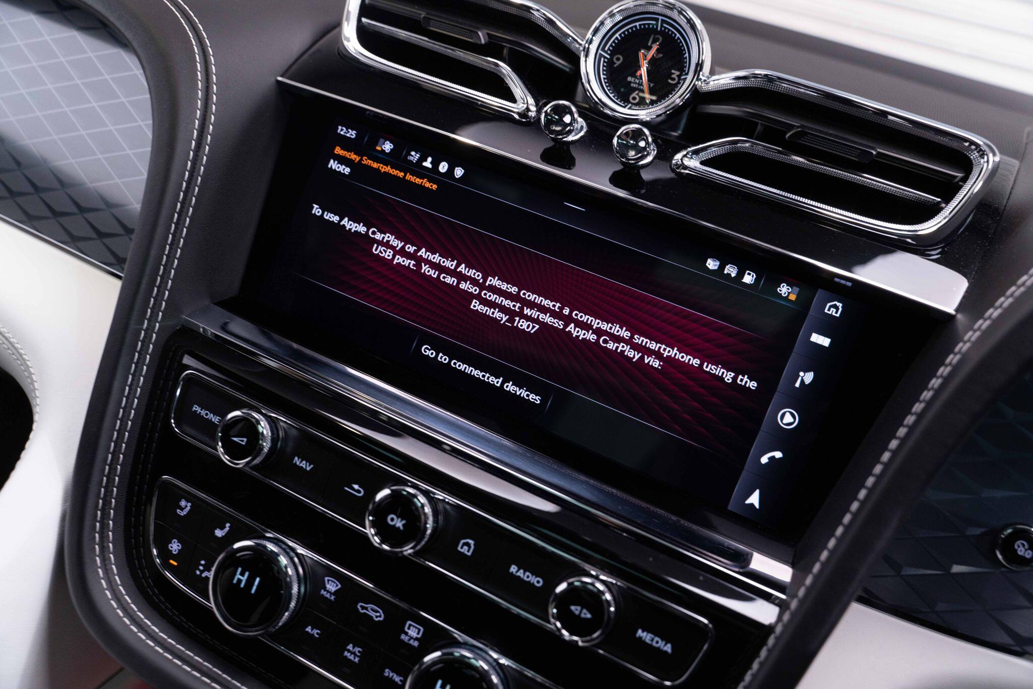 Experience effortless driving with features like light sensing automatic headlights and a rear view camera for enhanced parking assistance. The 8 inch touch screen infotainment system, complete with Bluetooth connectivity, keeps you connected and entertained. Comfort is paramount, with split folding heated rear seats and a panoramic tilt slide sunroof offering an airy and inviting cabin. The Bentayga V8 distinguishes itself with a remarkable 0-60mph acceleration time of just 4.4 seconds, showcasing its dynamic performance capabilities that set it apart from other vehicles in its class.