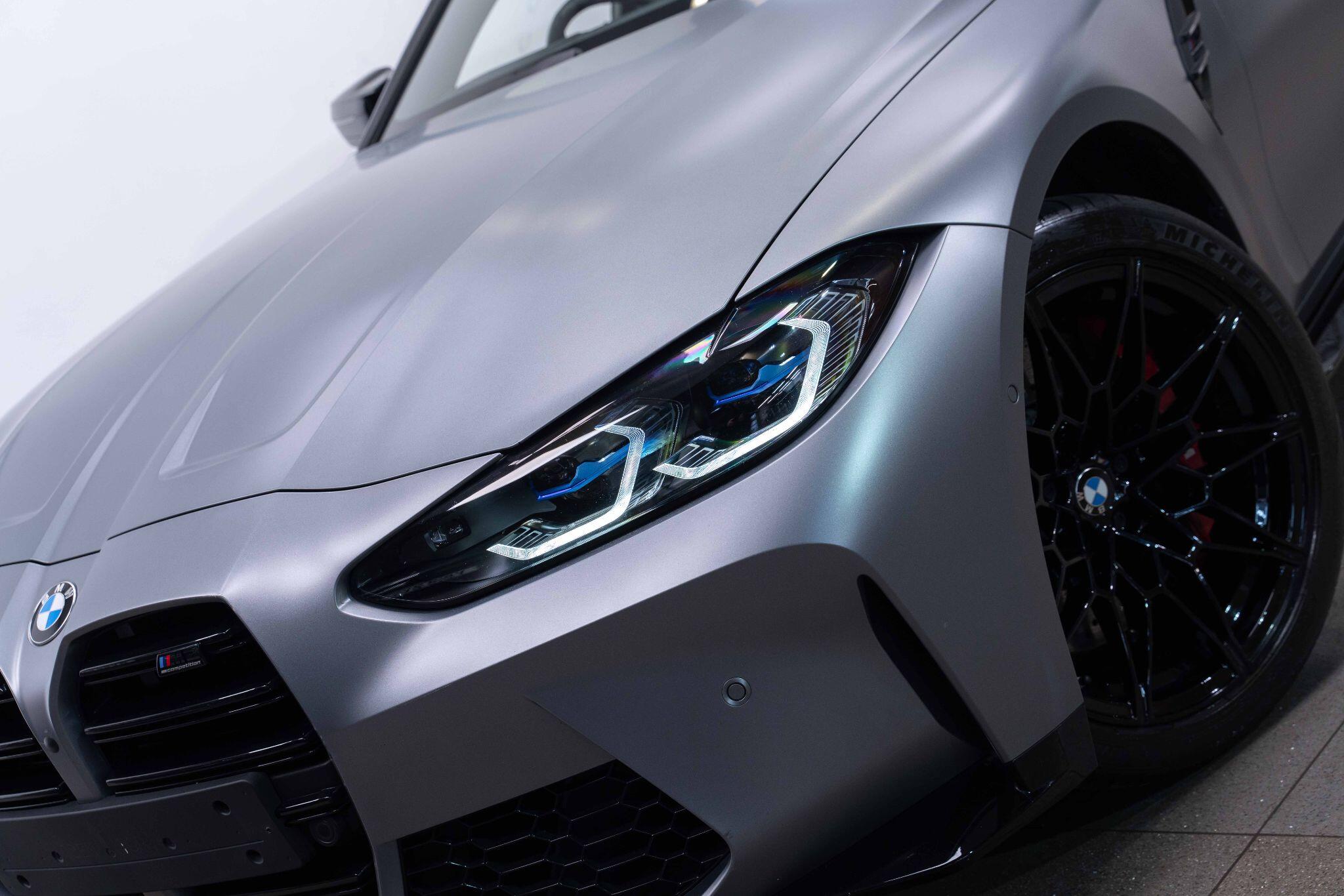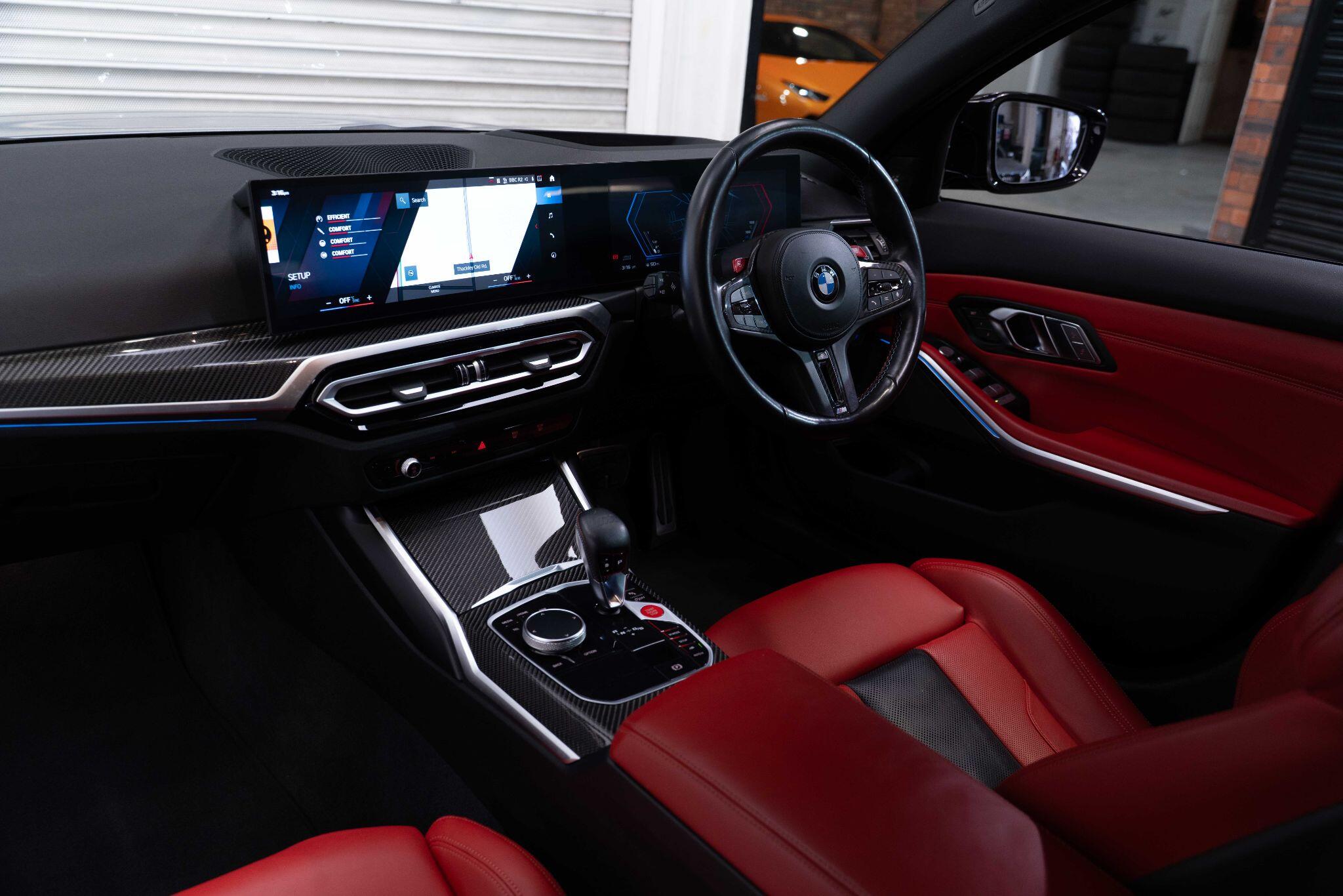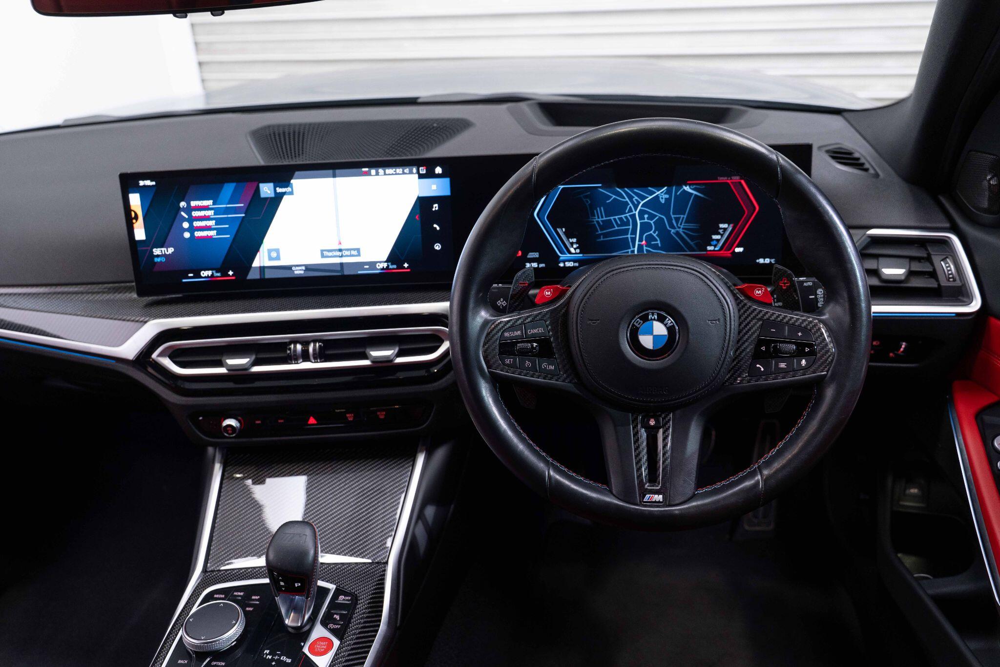 This 2023 BMW M3 BiTurbo Competition is a superb example, having had only one owner since new. This striking M3, with its powerful 3.0L petrol engine and Four Wheel Drive system, meets the Euro 6 emission standards. It comes equipped with the desirable Visibility Pack, featuring advanced LED and Laser headlights, and the Comfort Pack, which includes keyless entry and a heated steering wheel. Inside, you'll find front heated seats and electric memory seats for ultimate driver comfort, all complemented by the impressive Harman Kardon Surround Audio Sound System.