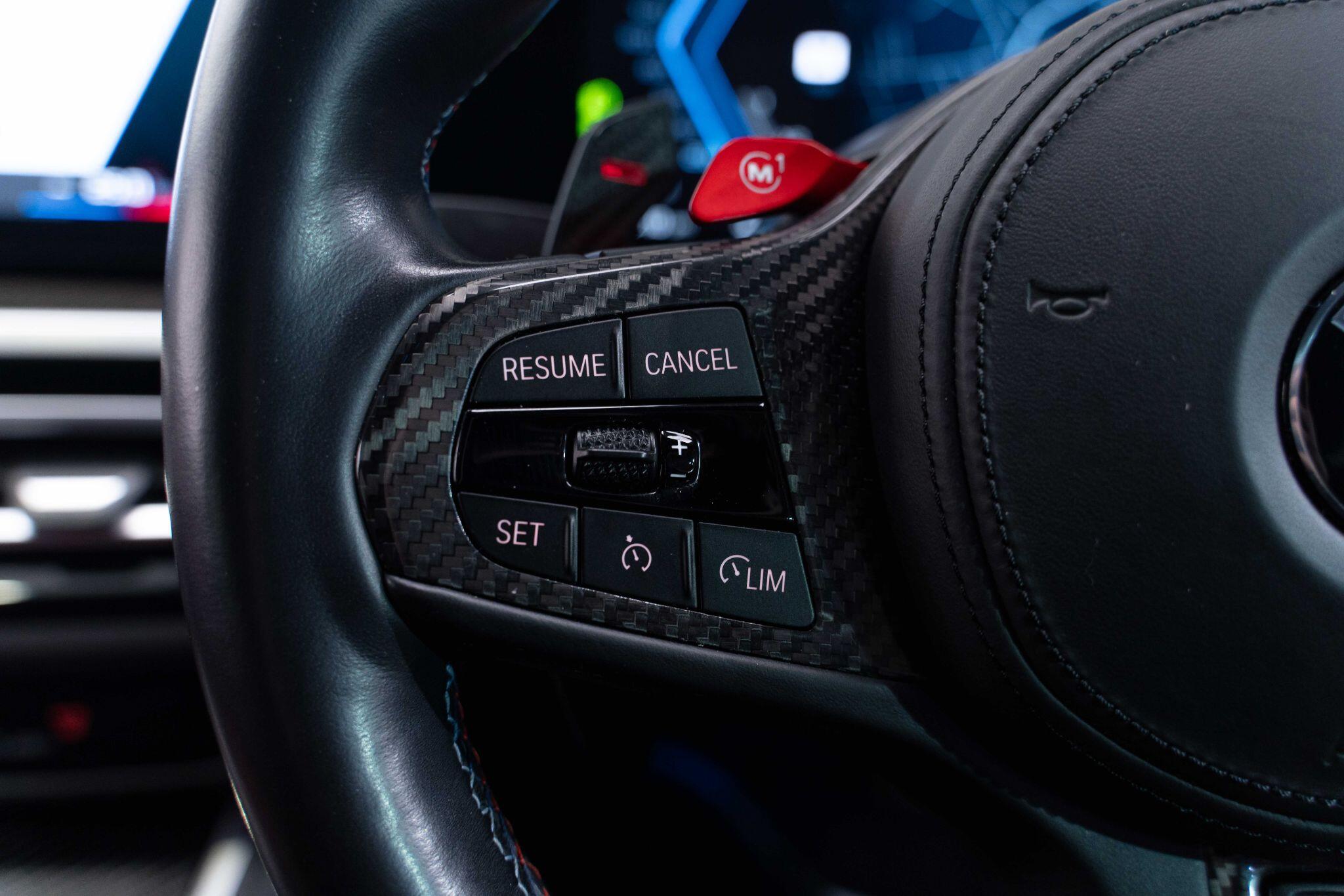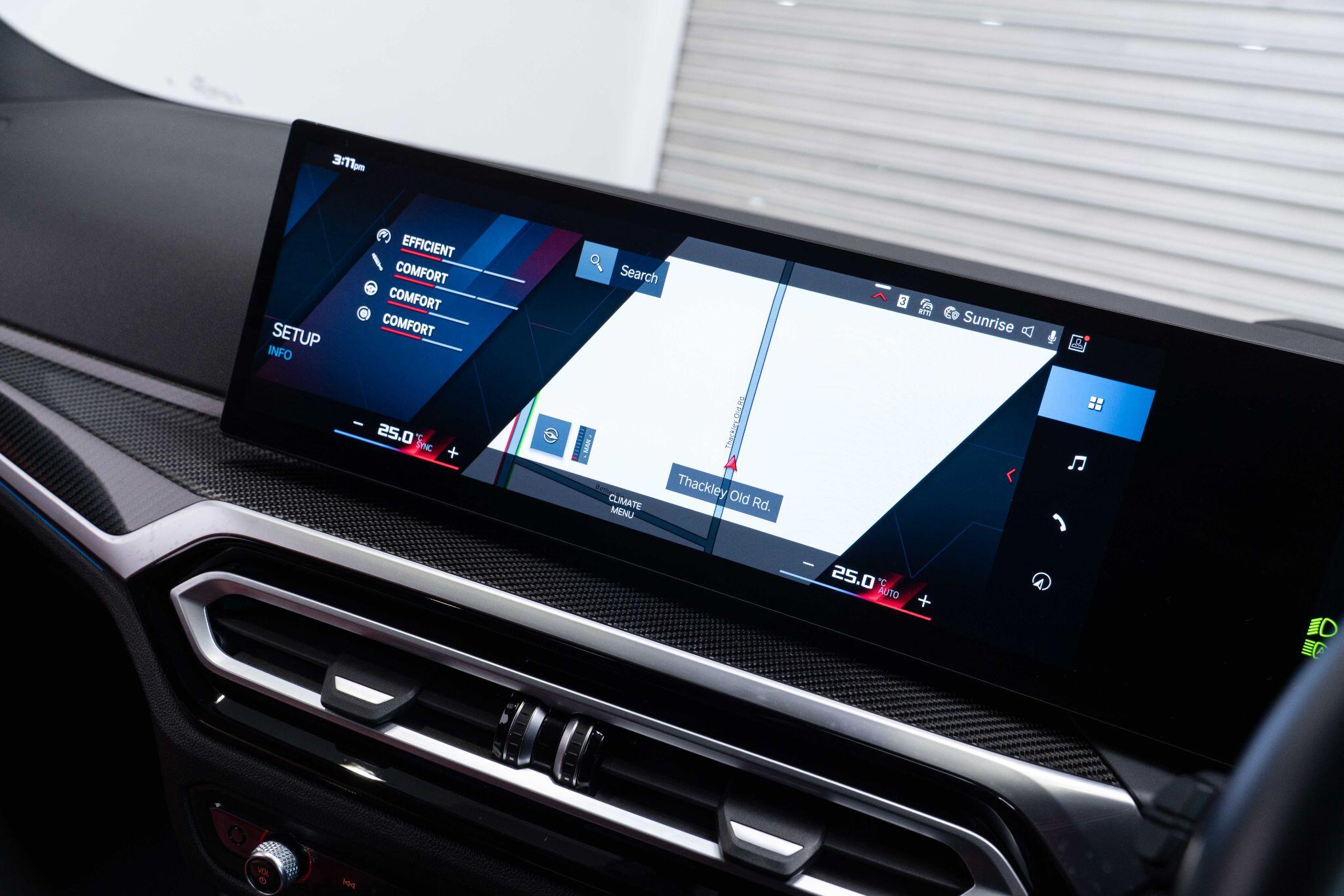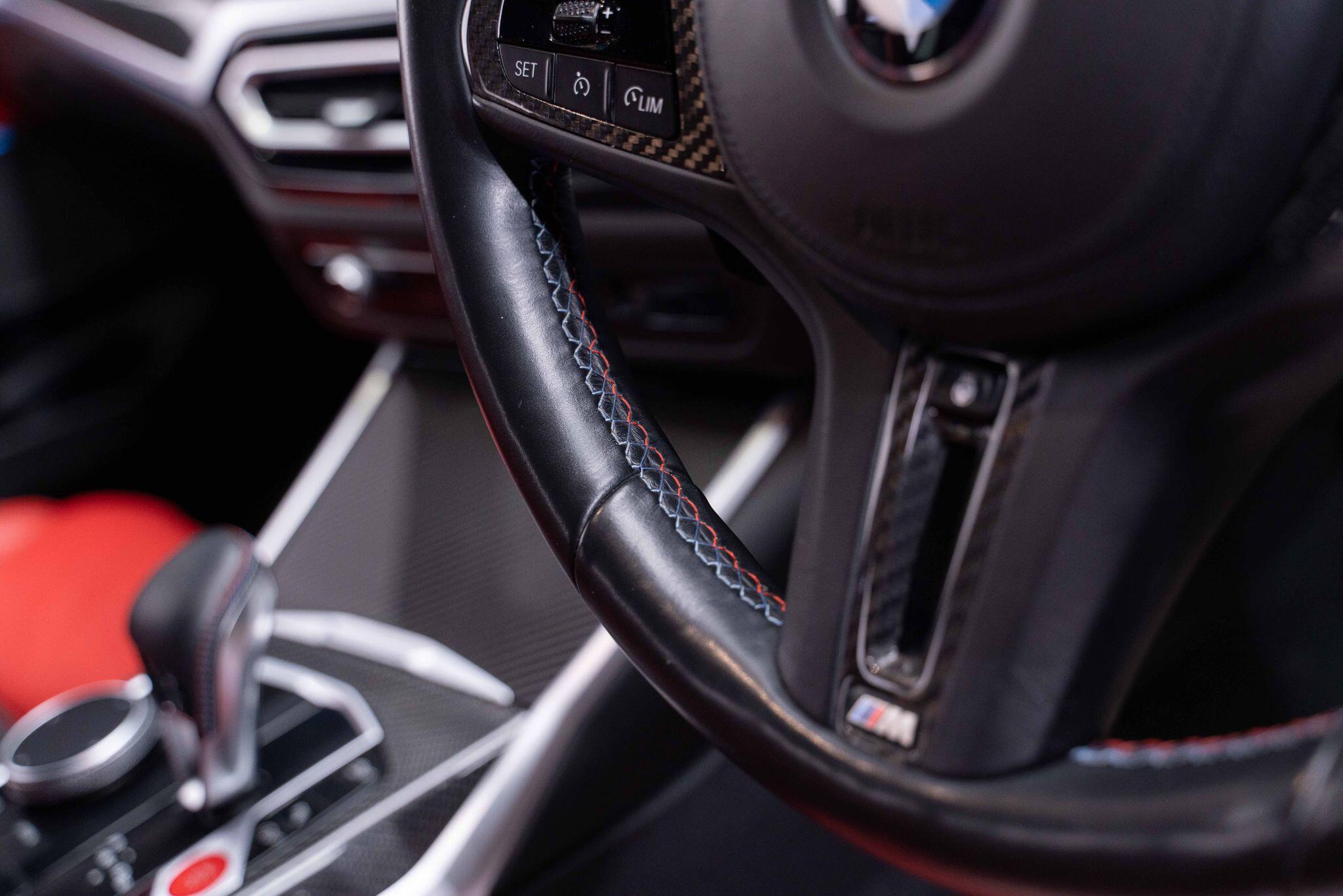 This 2023 BMW M3 BiTurbo Competition is a superb example, having had only one owner since new. This striking M3, with its powerful 3.0L petrol engine and Four Wheel Drive system, meets the Euro 6 emission standards. It comes equipped with the desirable Visibility Pack, featuring advanced LED and Laser headlights, and the Comfort Pack, which includes keyless entry and a heated steering wheel. Inside, you'll find front heated seats and electric memory seats for ultimate driver comfort, all complemented by the impressive Harman Kardon Surround Audio Sound System.