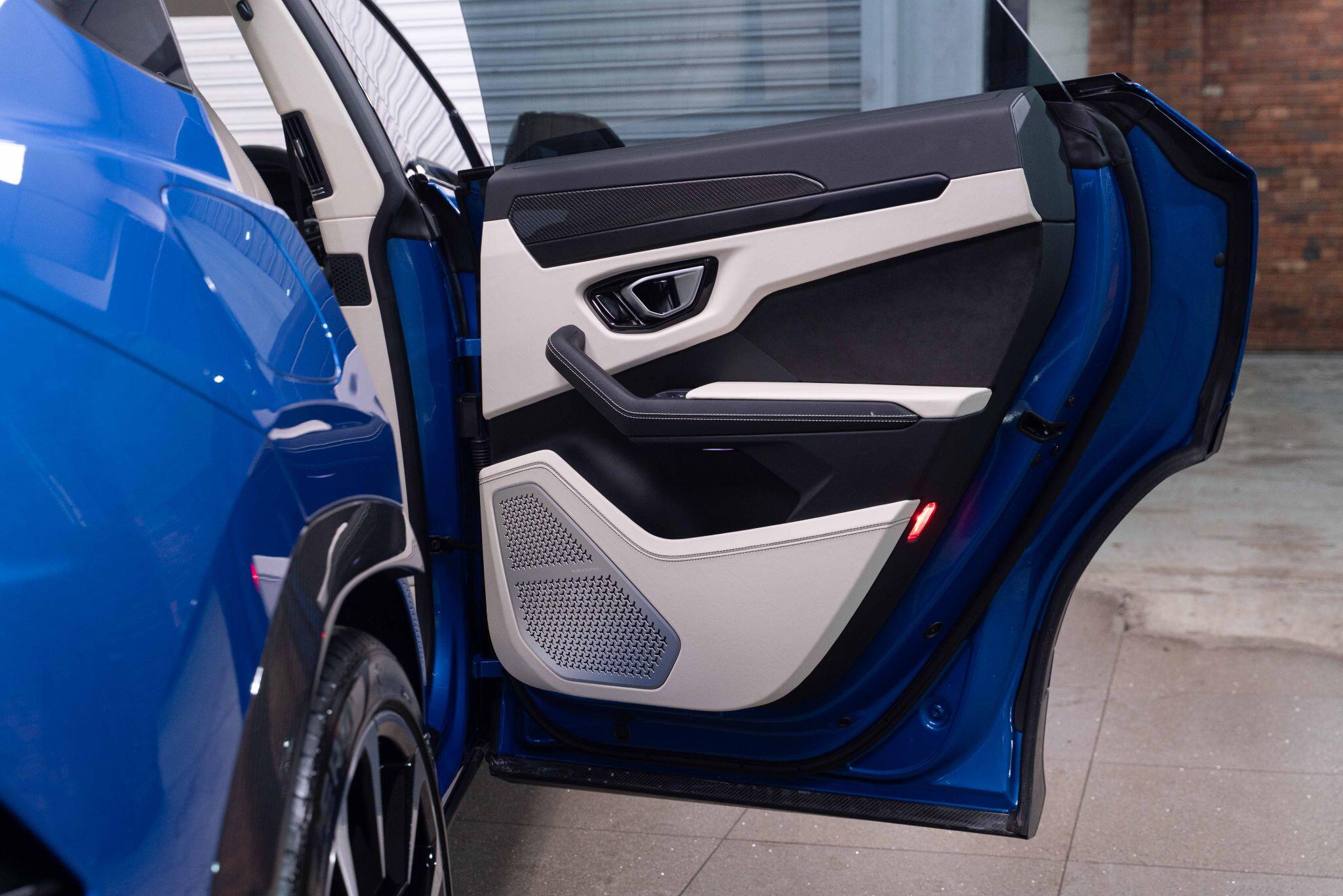 WE ARE PROUD TO OFFER THIS BEAUTIFUL HIGH SPEC LAMBORGHINI URUS FINISHED IN THIS STUNNING BLUE ELEOS WITH BIANCO POLAR LEATHER.