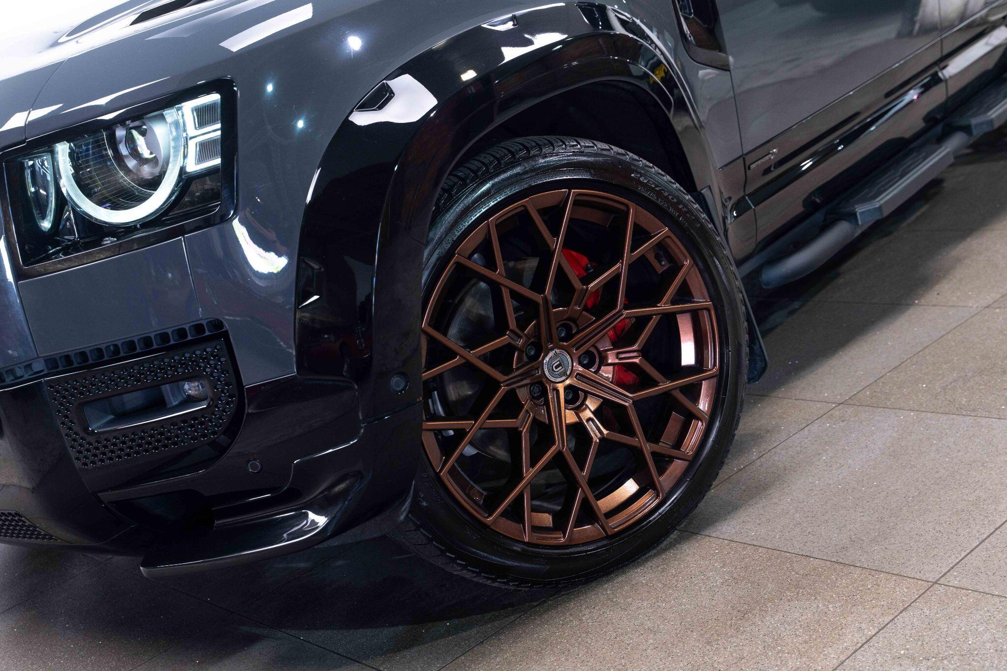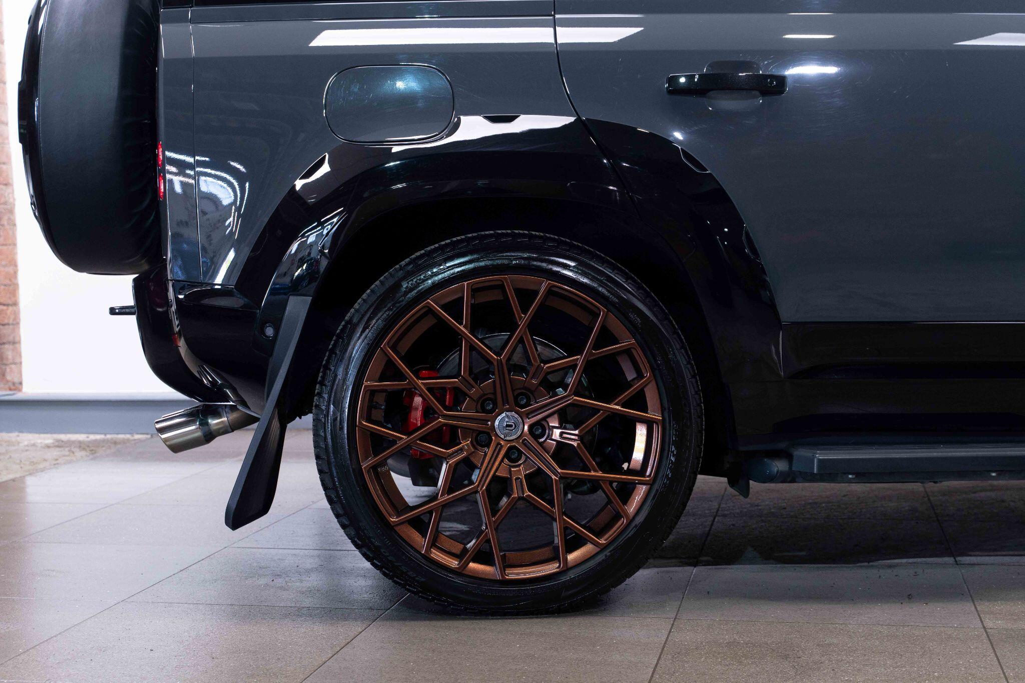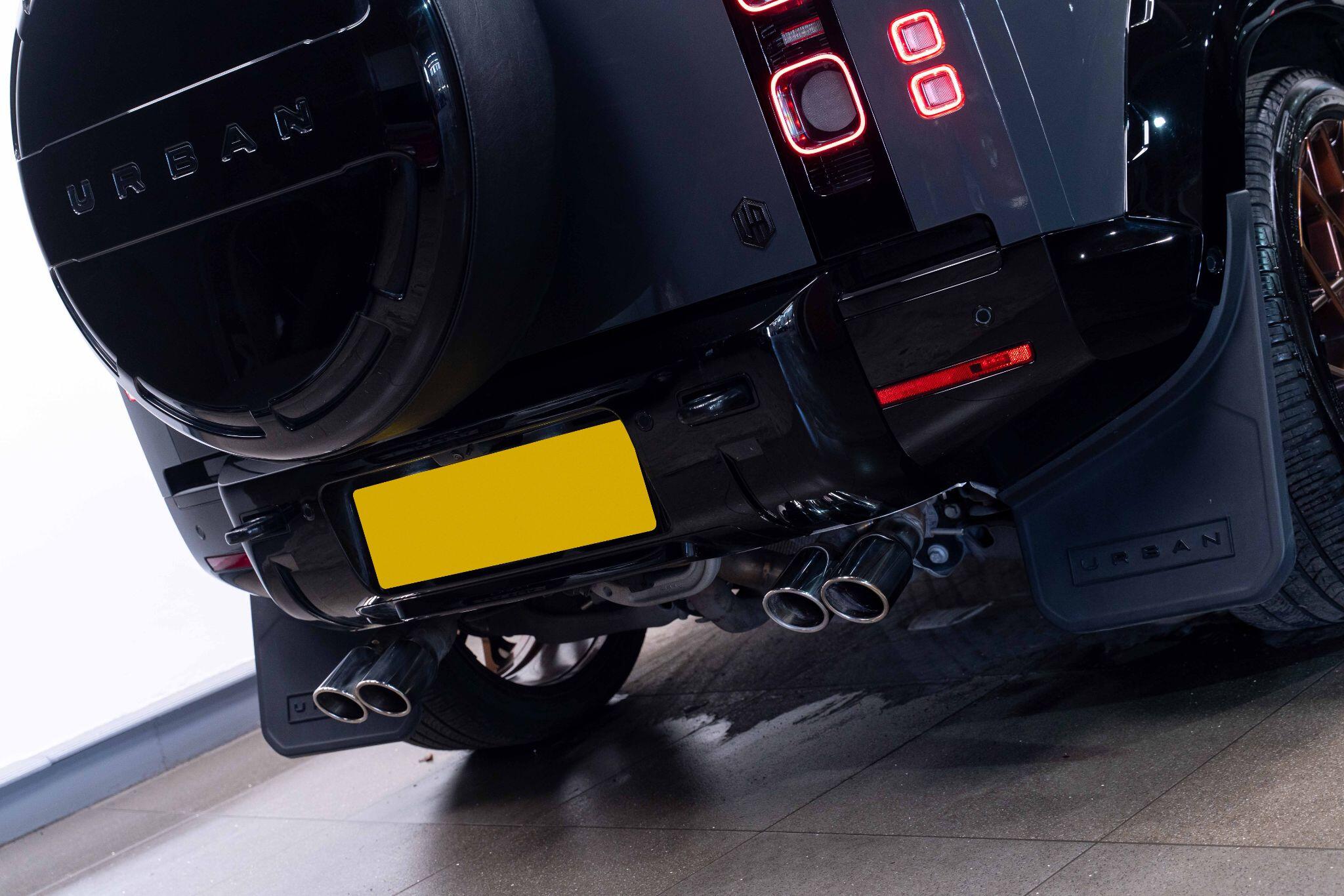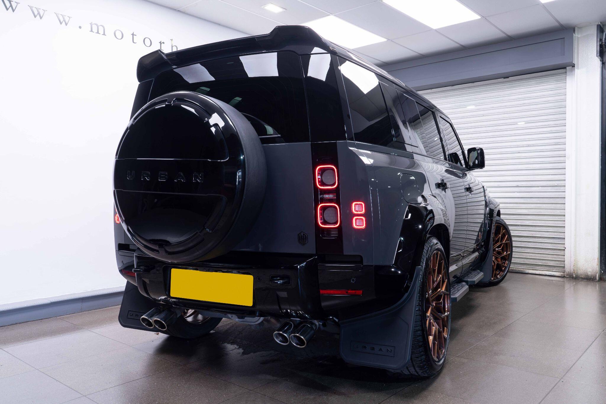Here we have for sale a real one off Urban Styled Defender 110 X with the superb 5.0 litre engine and lovely low mileage. Recently serviced and ready to go. Full Urban Widetrack kit and roof lights, fitted with 23" Urban U-V1 Coppertone finished alloys. Additional spec includes, Air Suspension, an electrically deployed tow bar and a Panoramic sunroof. The main car body is finished in Santorini Black with the doors and bonnet wrapped in dark grey with Contrasting Caraway Cream leather seating. Please call 07836 340 760 for any further information on this unique looking Defender.