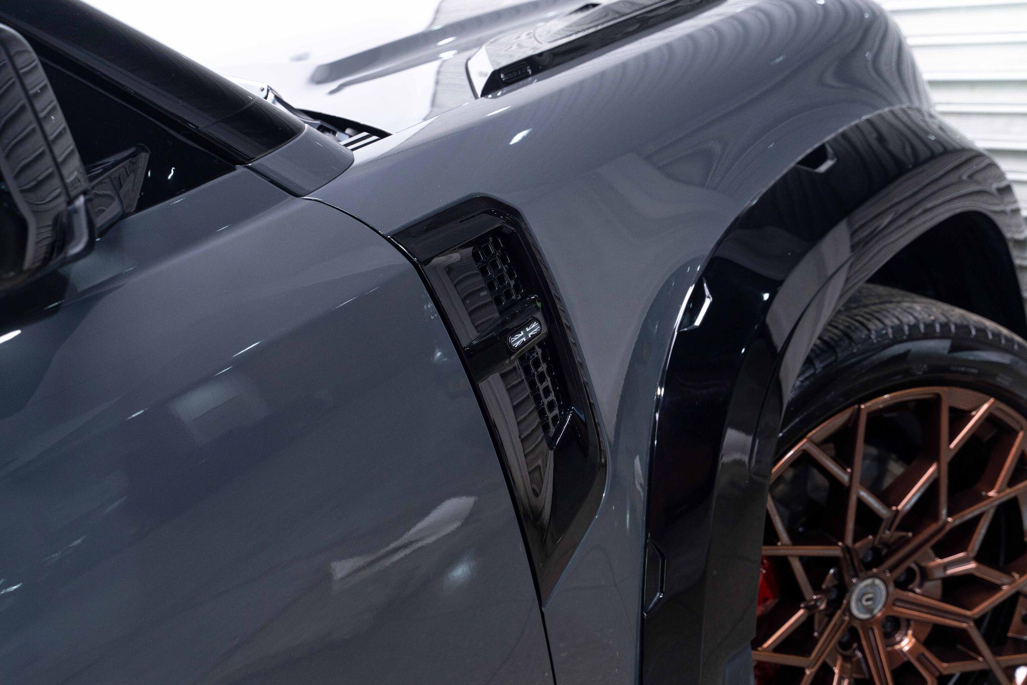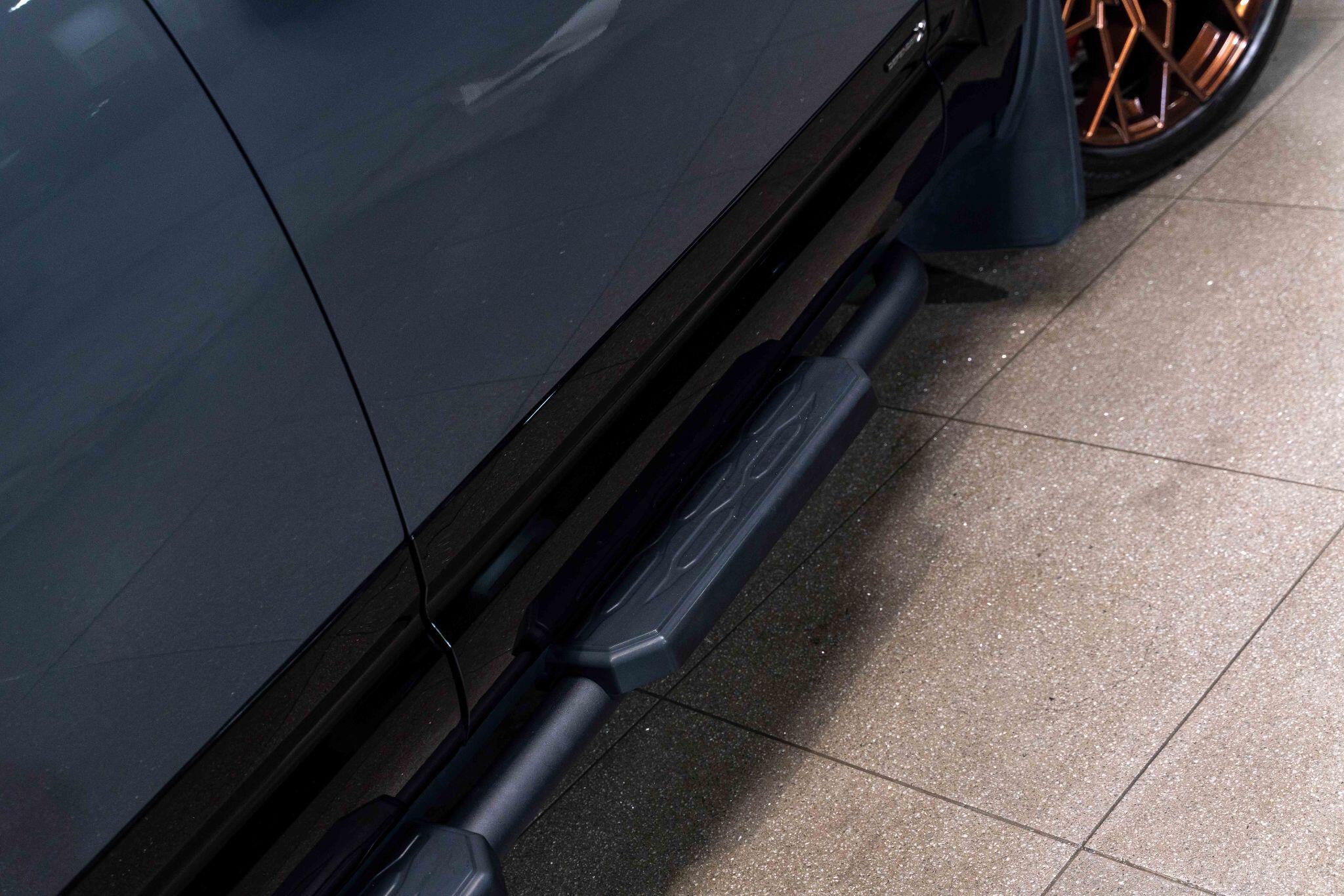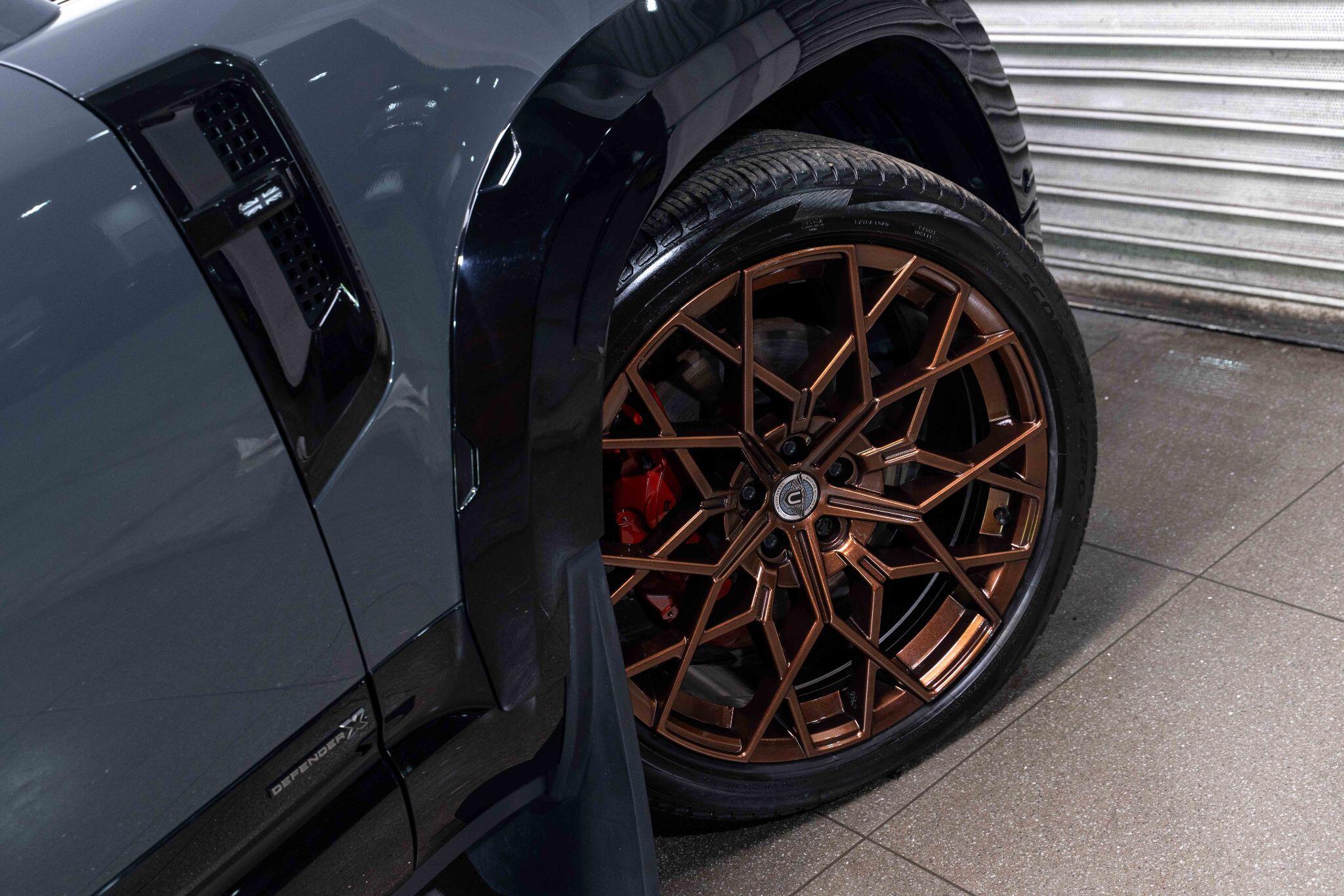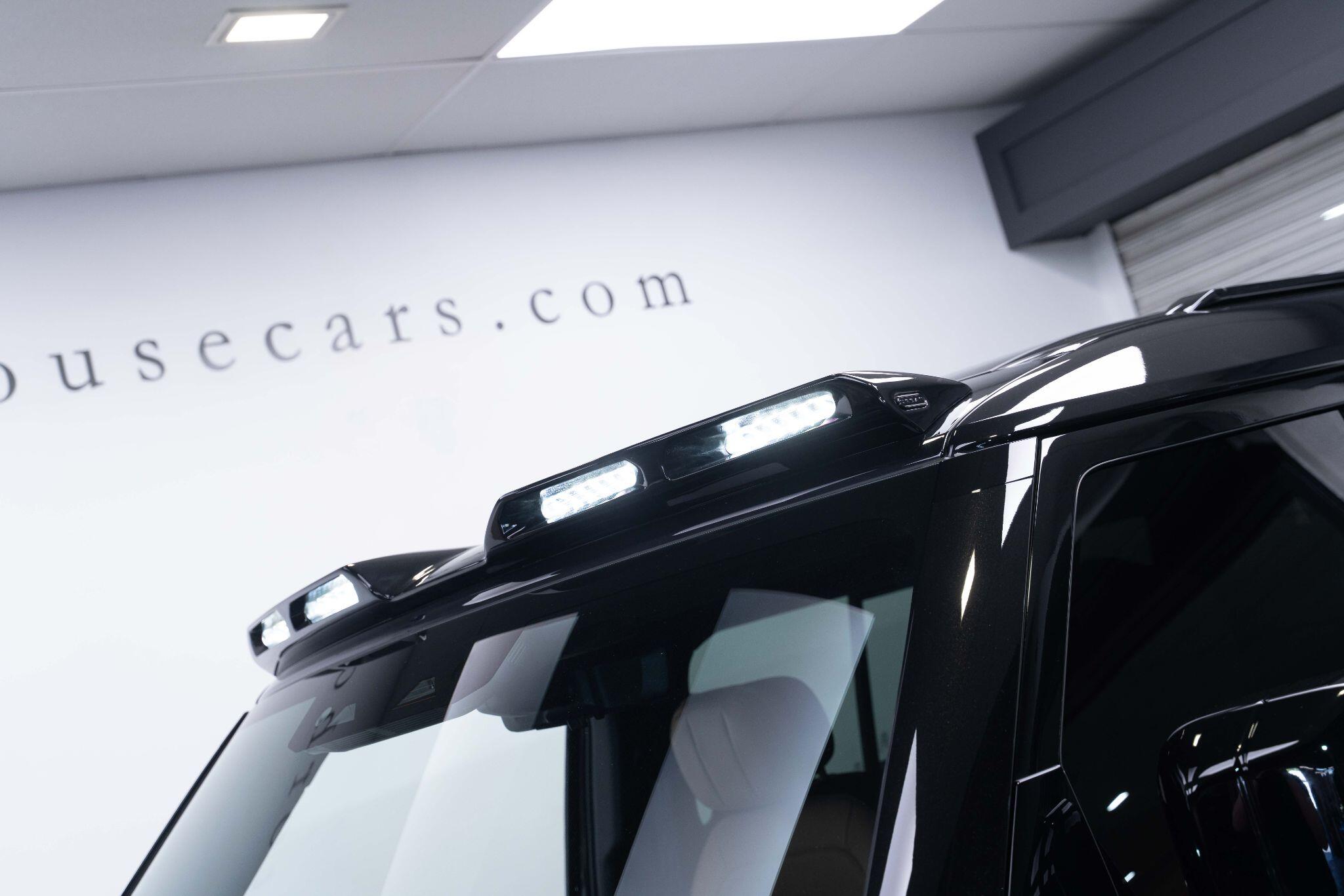Here we have for sale a real one off Urban Styled Defender 110 X with the superb 5.0 litre engine and lovely low mileage. Recently serviced and ready to go. Full Urban Widetrack kit and roof lights, fitted with 23" Urban U-V1 Coppertone finished alloys. Additional spec includes, Air Suspension, an electrically deployed tow bar and a Panoramic sunroof. The main car body is finished in Santorini Black with the doors and bonnet wrapped in dark grey with Contrasting Caraway Cream leather seating. Please call 07836 340 760 for any further information on this unique looking Defender.