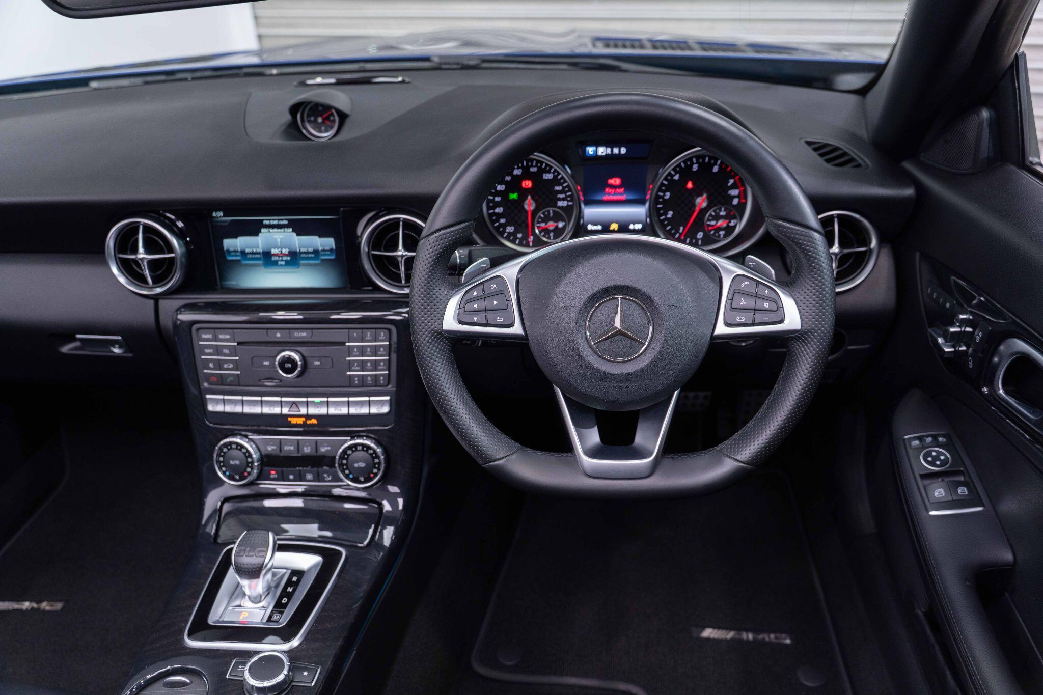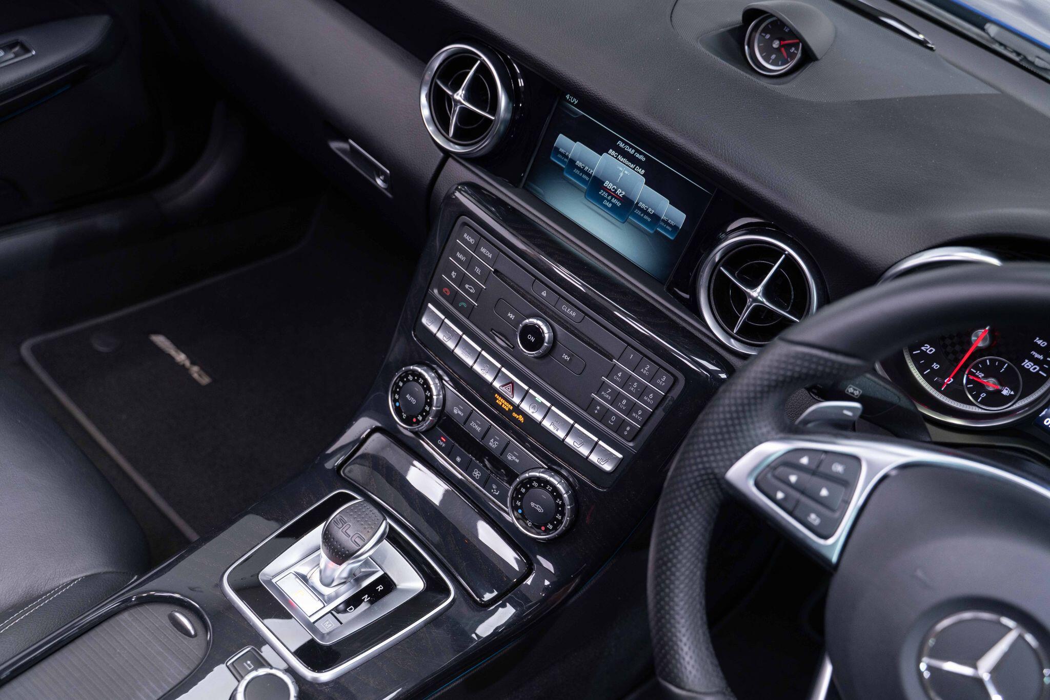 This 2017 Mercedes Benz SLC300 AMG Line boasts exceptionally low mileage for its age, having covered just 23,000 miles. This particular example is presented in the desirable AMG Line trim, featuring a responsive 2.0 litre petrol engine that meets Euro 6 emissions standards. Inside, you'll find a wealth of comfort and technology, including the COMAND Online System for navigation and entertainment, a Memory Package for the seats, and the innovative AIRSCARF neck level heating system for open top driving enjoyment. A reversing camera aids parking, complemented by rear camera parking assistance, while an analogue clock adds a touch of classic elegance.