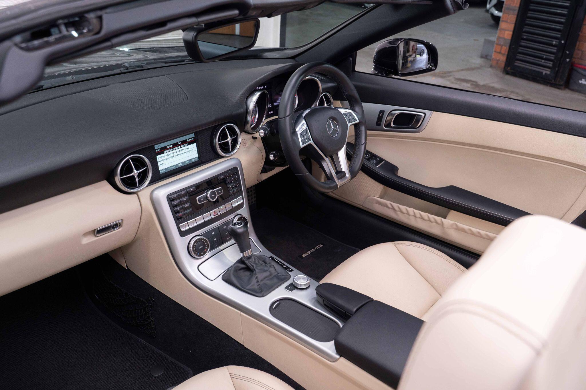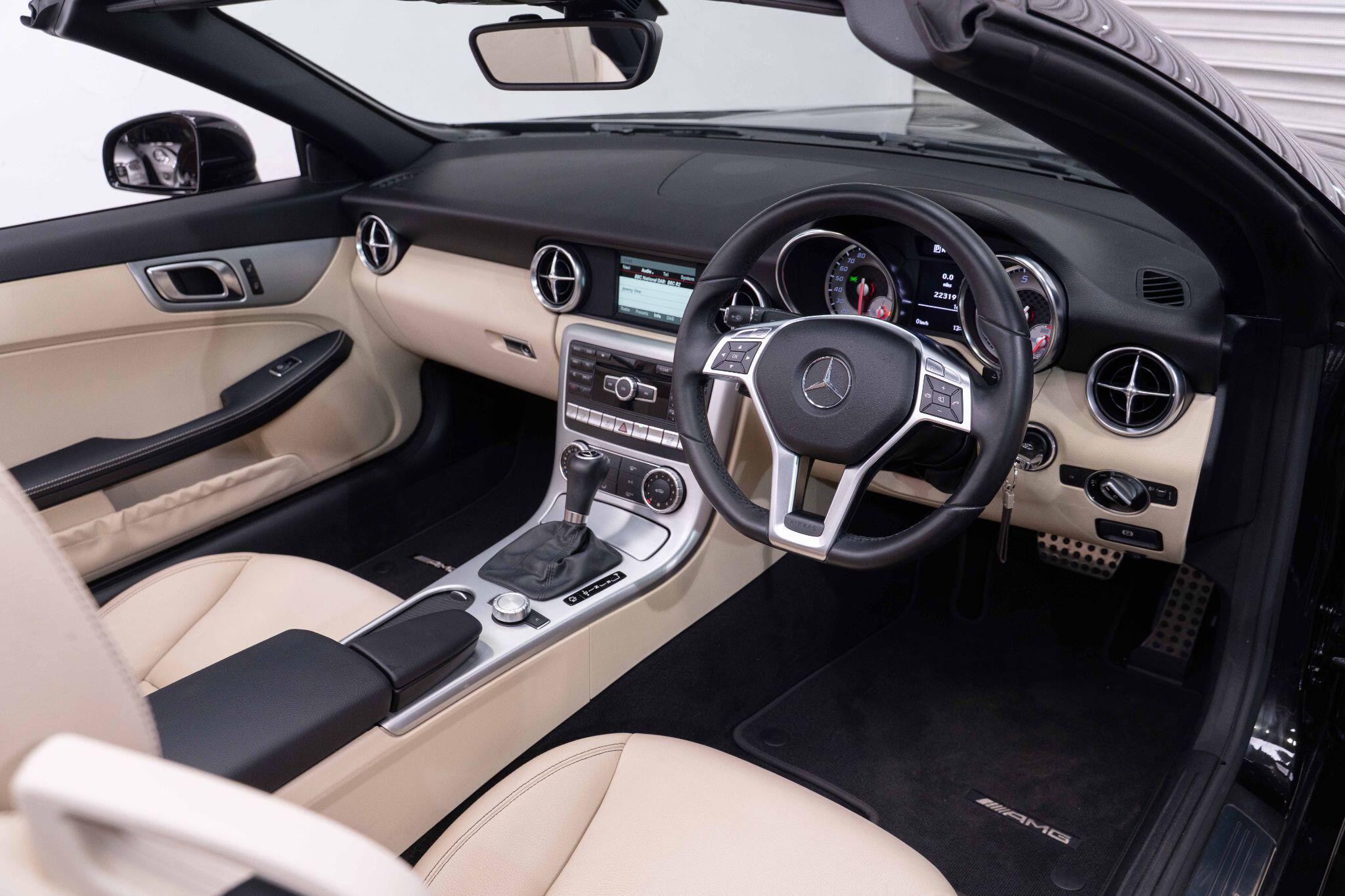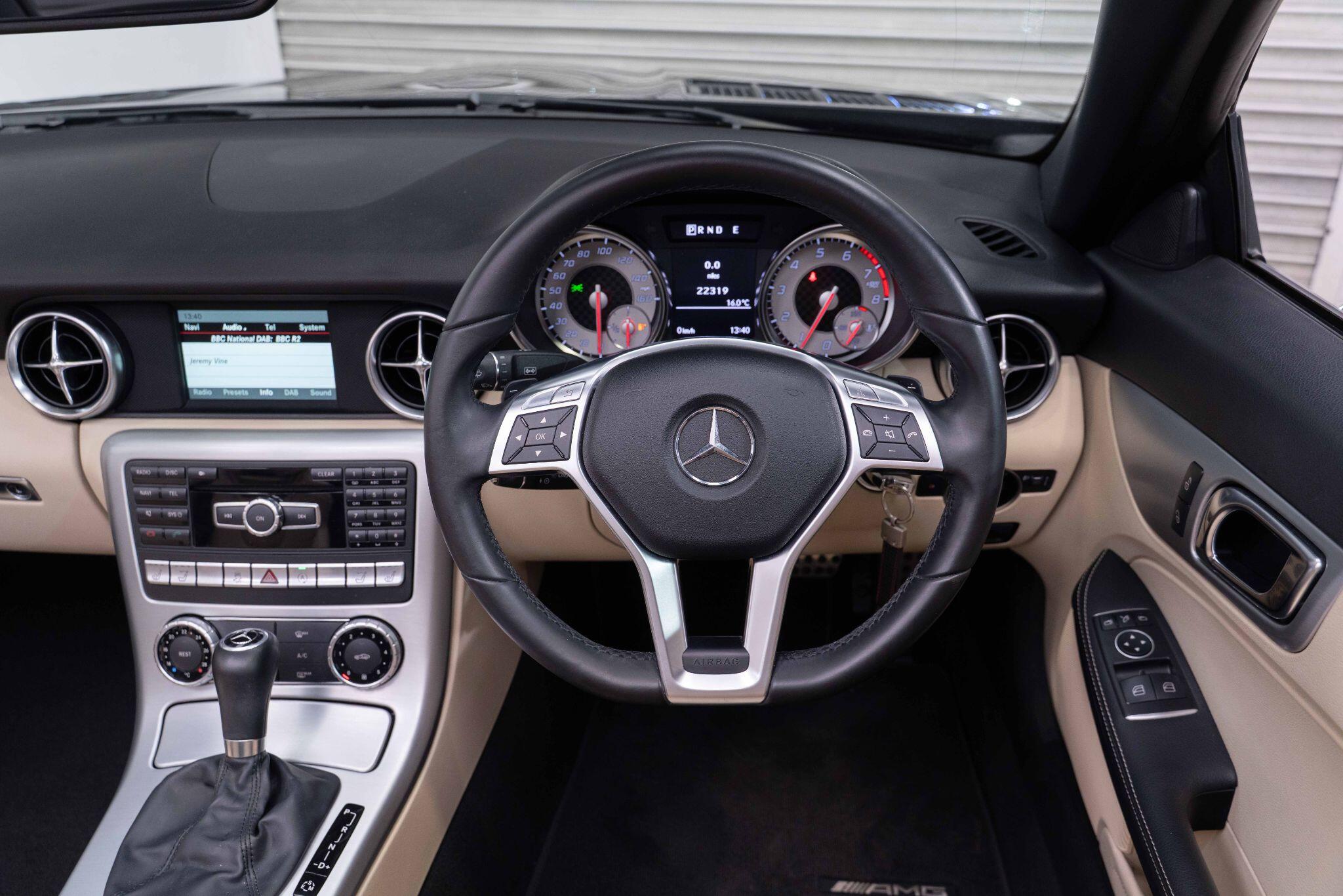 Discover this exceptional Mercedes Benz SLK200 AMG Sport from 2014, boasting an incredibly low mileage of just 22,000 miles, making it a standout choice for its age. This model features the desirable AMG Sport trim and is powered by an efficient 1.8L petrol engine. Experience open top driving in any weather with the innovative Panoramic Vario Roof, which includes an opening panoramic sunroof, and stay comfortable on cooler days with the AIRSCARF neck level heating system. Further enhancing your driving pleasure are the Media Interface for seamless connectivity, the comprehensive Mirror Package, and heated front seats for added luxury.