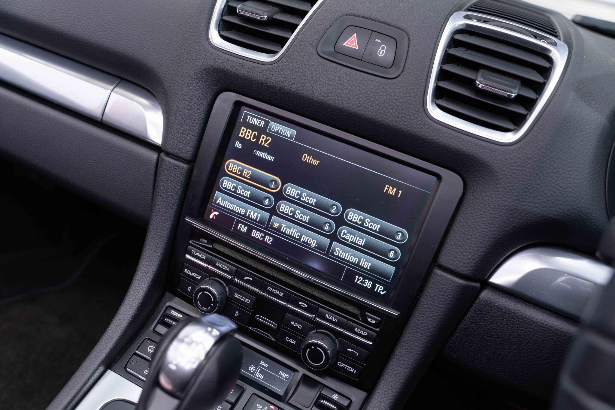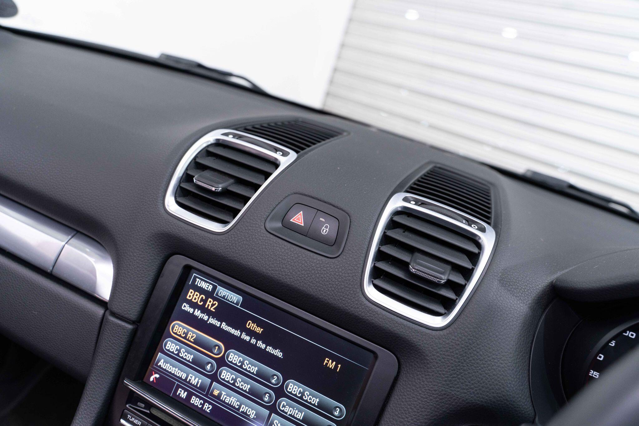 This 2013 Porsche Boxster 981 presents an exceptional opportunity with its remarkably low mileage of just 29,000 miles and only two previous owners. This particular example is equipped with a responsive 2.7 litre petrol engine, promising an engaging driving experience. It sits on striking 20 inch Sport Techno alloy wheels, complete with full colour Porsche crests, and benefits from Bi-Xenon headlights featuring Porsche Dynamic Light System for enhanced visibility. Inside, you'll find a multi-function steering wheel for convenient control, a telephone module with Bluetooth connectivity for seamless communication, and premium floor mats adorned with a coloured logo and leather surround.