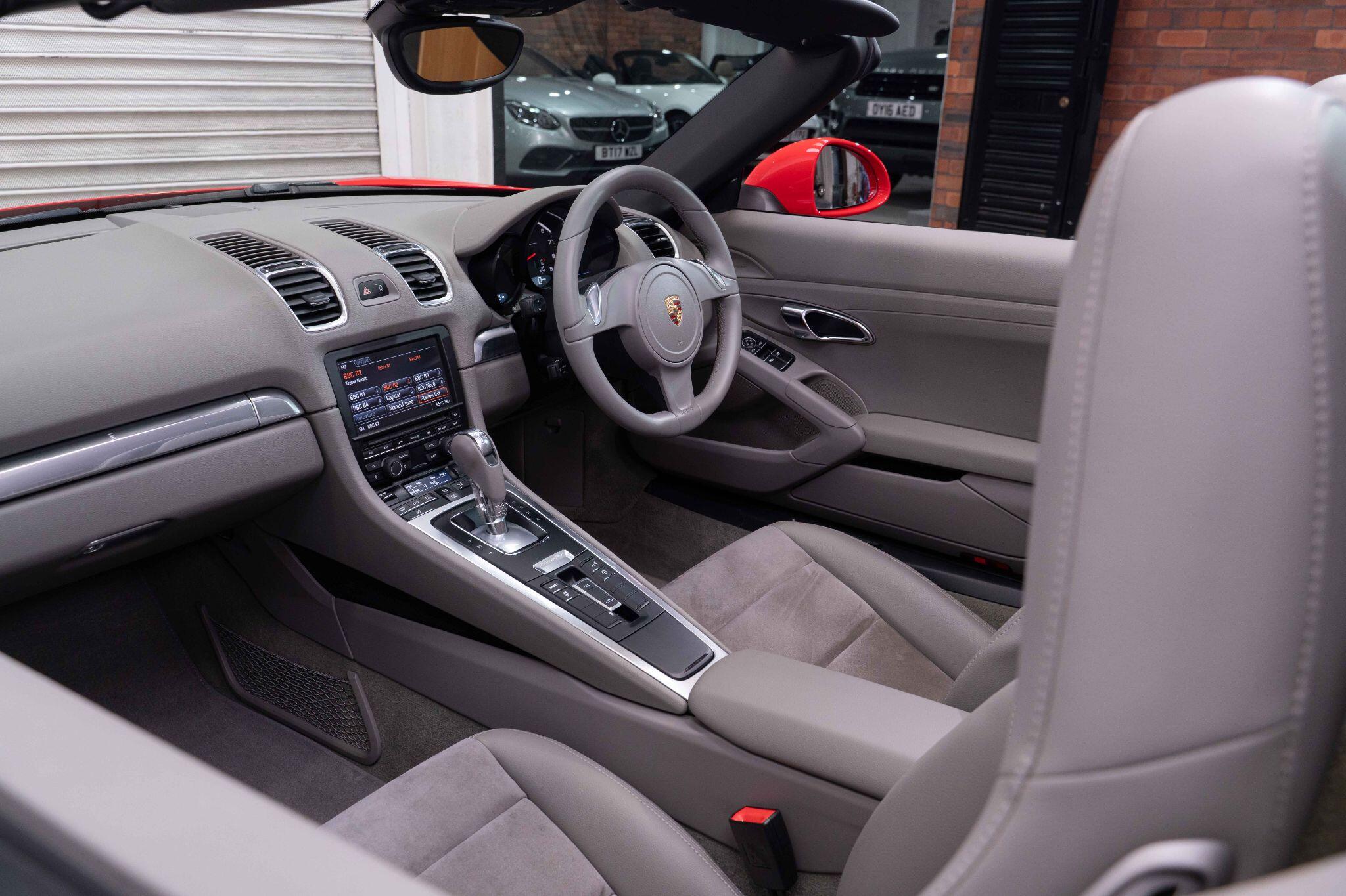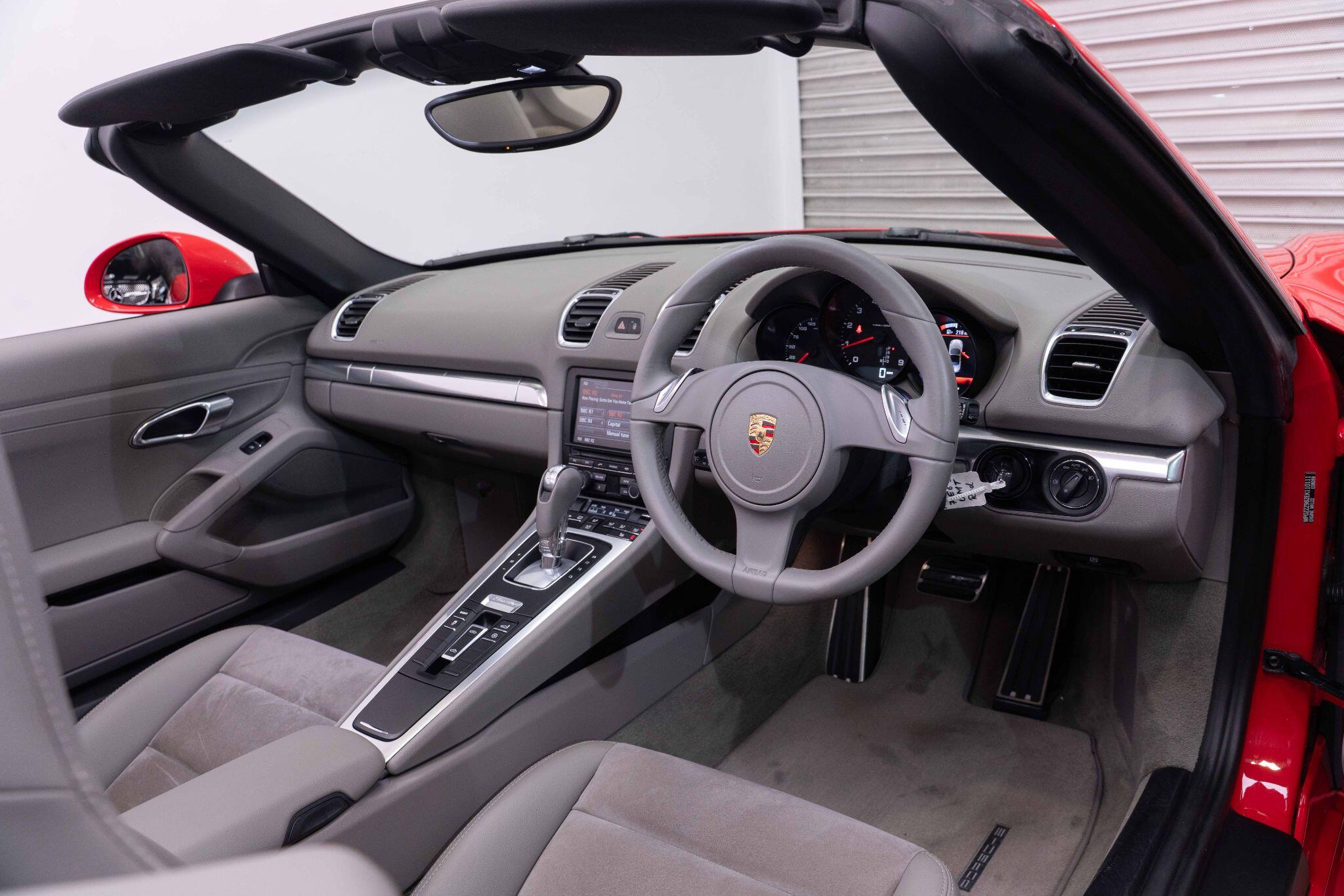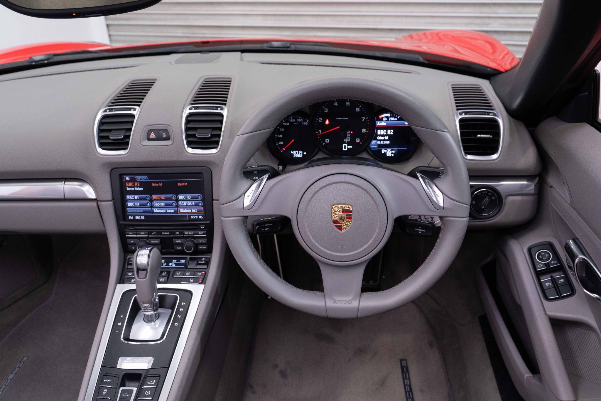 This 2013 Porsche Boxster 981 presents a remarkable opportunity with its exceptionally low mileage of just 43,000 miles and a history of only three owners. This 2.7 litre petrol model combines exhilarating performance with practical features, including automatically dimming mirrors with an integrated rain sensor, and a sports exhaust tailpipe for a more engaging driving experience. Inside, you will find heated front seats for comfort in all weather, and automatic air conditioning with climate control to maintain your preferred temperature. The driving light assistant, featuring automatic coming home lights, ensures you always have optimal visibility.