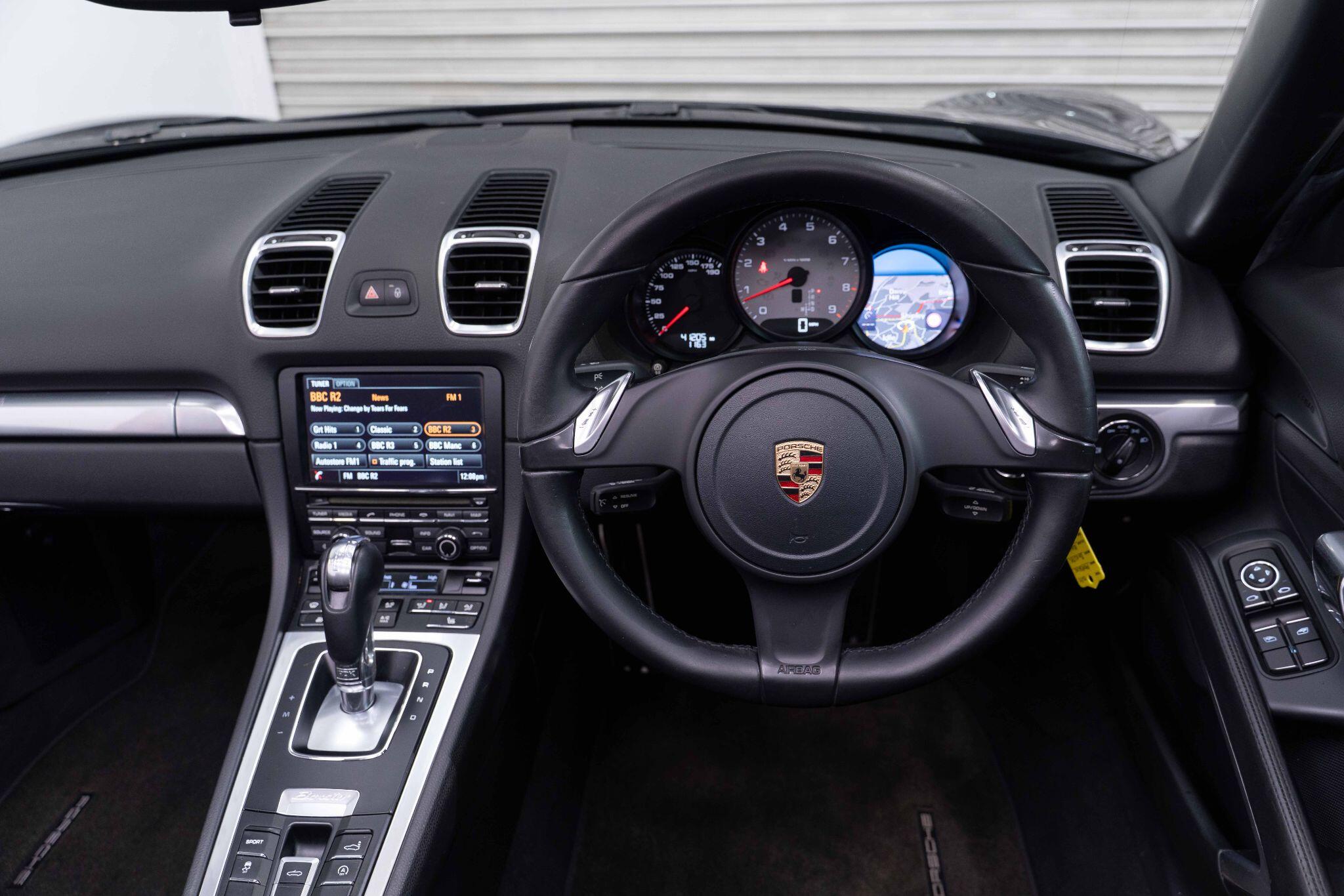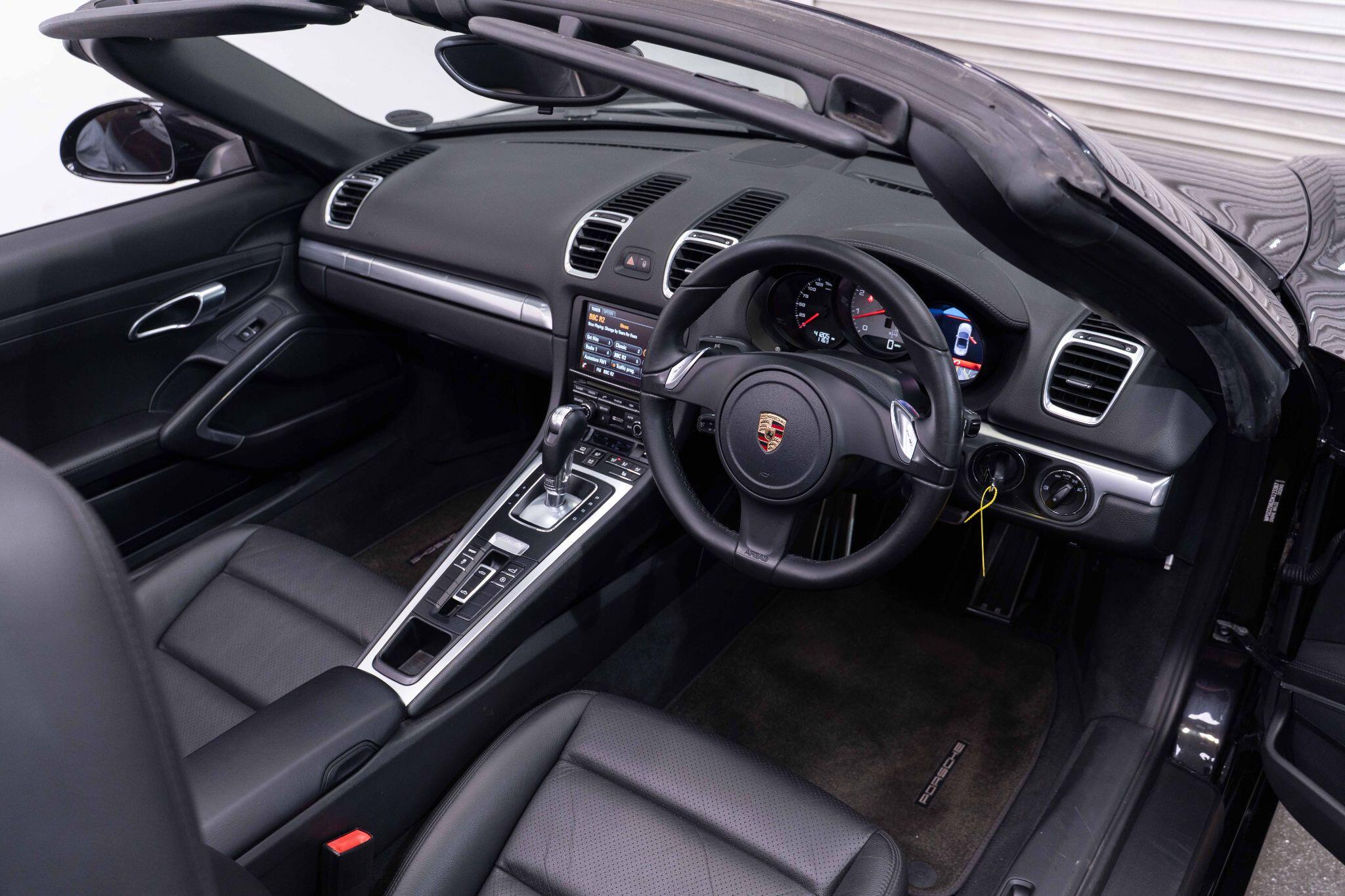 This 2013 Porsche Boxster 981 S Powered by a potent 3.4 litre petrol engine, this model boasts impressive performance, achieving 0-62mph in a swift 5.0 seconds. Inside, you'll find a comfortable and well appointed cabin featuring sports seats in partial leather with a full leather package, complemented by aluminium PDK gear selector and plush floor mats with a coloured logo and leather surround. For added convenience, the vehicle is equipped with Park Assist for both the front and rear, along with the Sound Package Plus to enhance your driving experience.