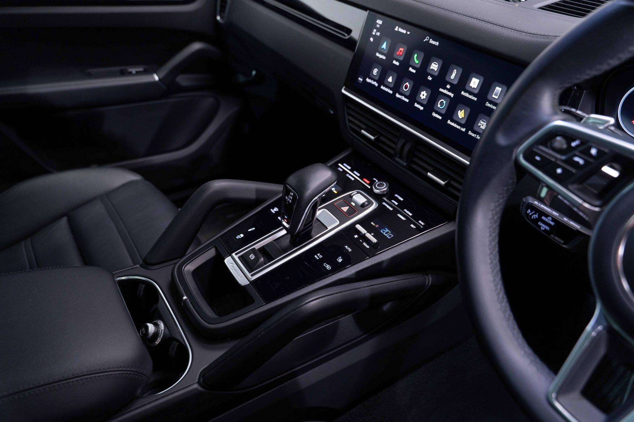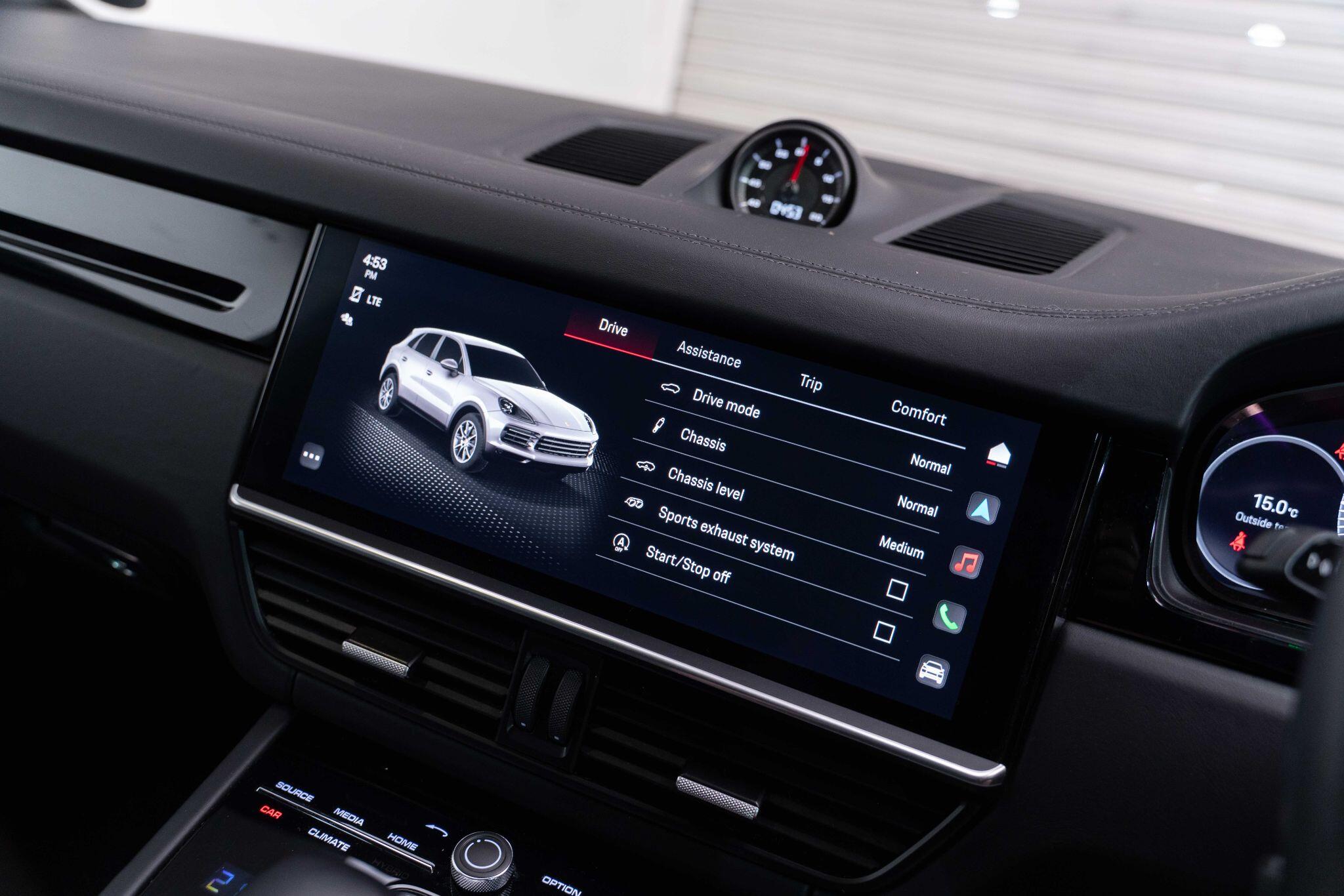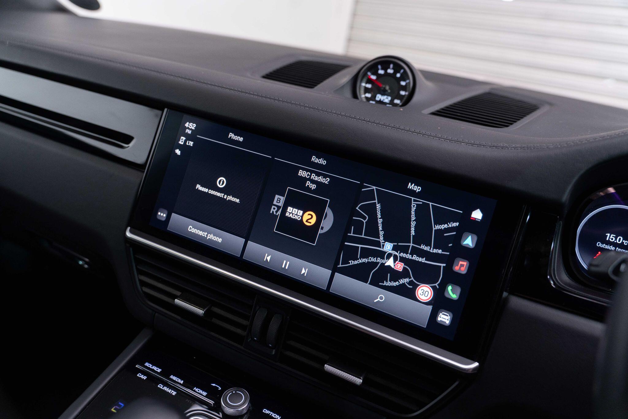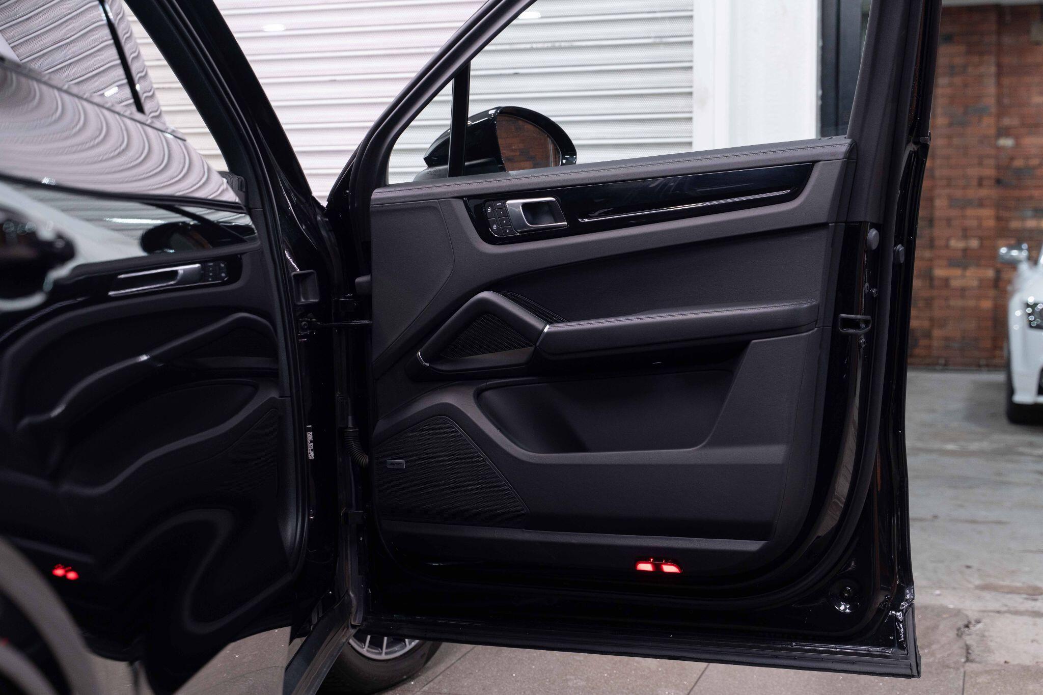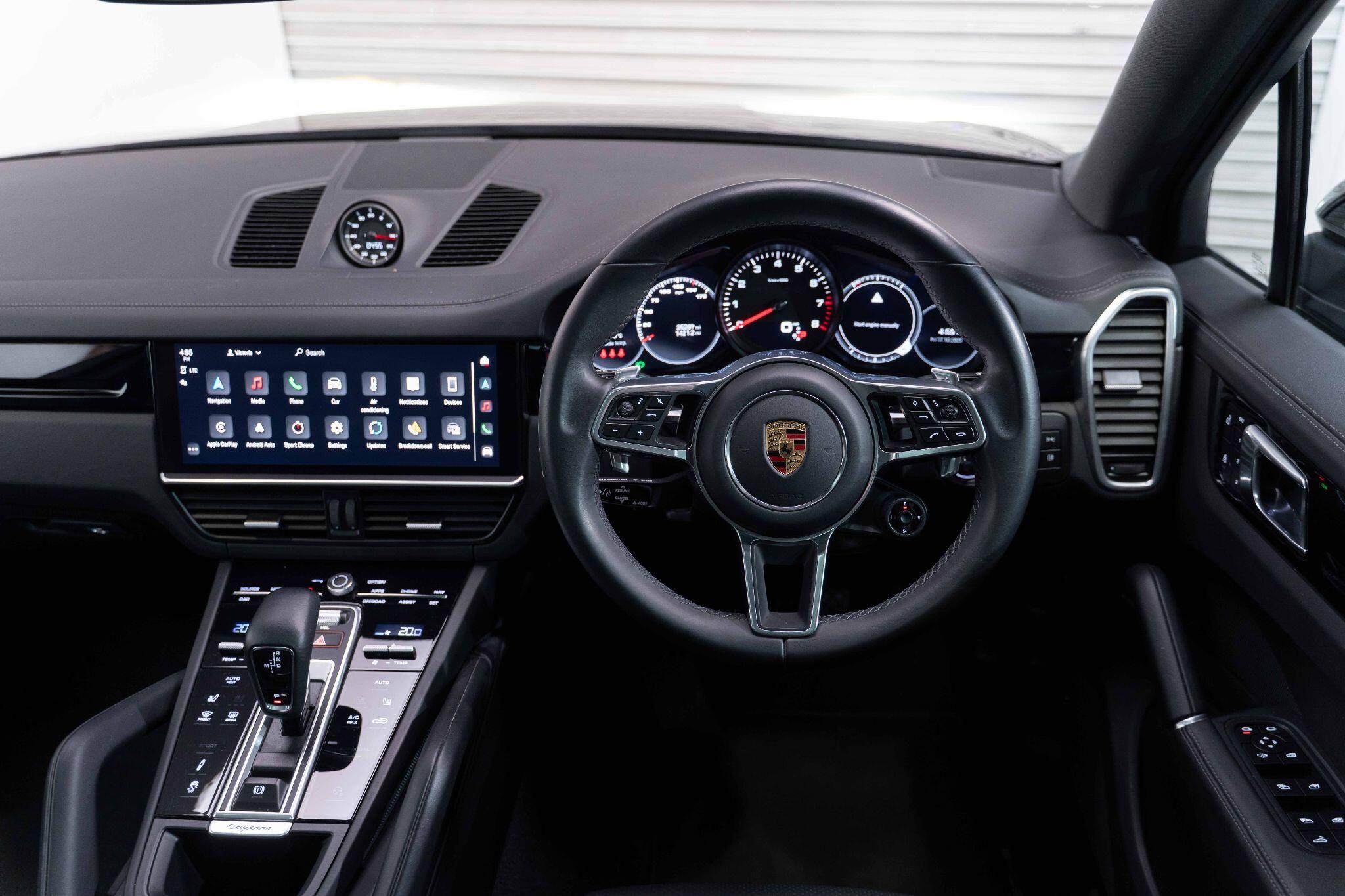 This 2022 Porsche Cayenne T V6 offers a compelling blend of performance and practicality, boasting a 3.0L petrol engine and four wheel drive for assured handling in all conditions. Finished in a sophisticated black, with the PORSCHE logo and model designation painted in black matt and high gloss black respectively, it presents a striking aesthetic. This Euro 6 compliant model is equipped with a host of desirable features, including ParkAssist with a 360 degree camera for effortless manoeuvring, an electrically extending towbar system for added versatility, and black aluminium roof rails.