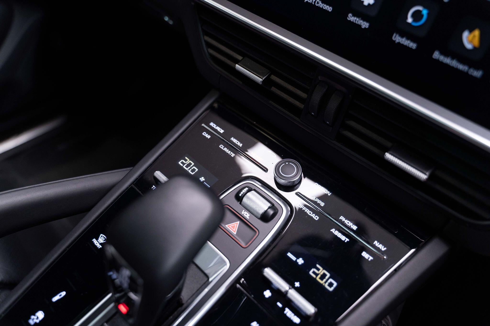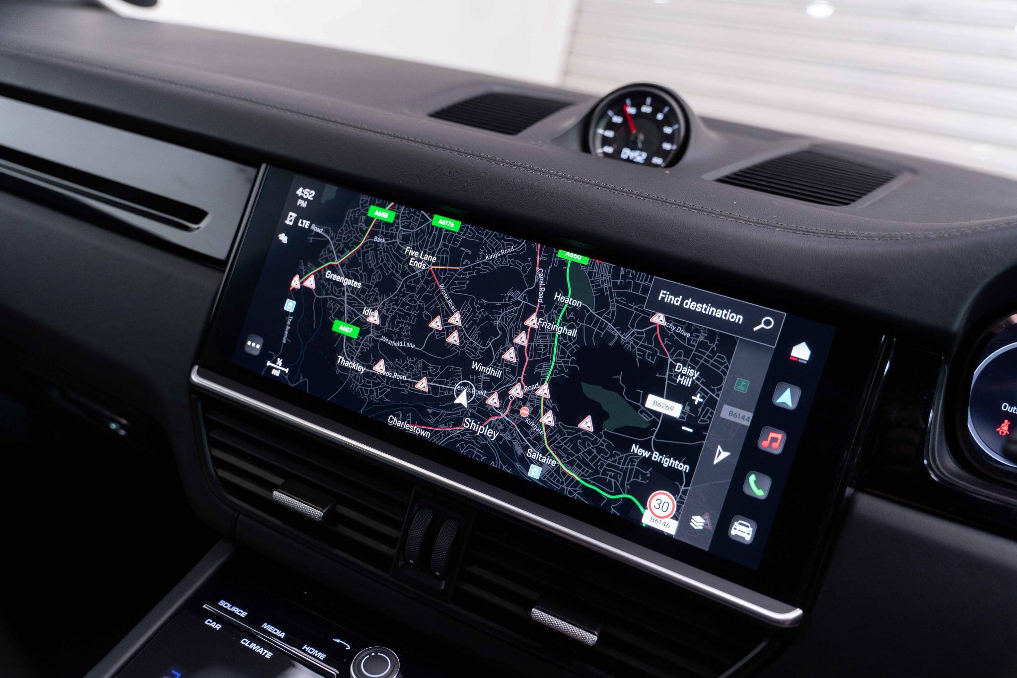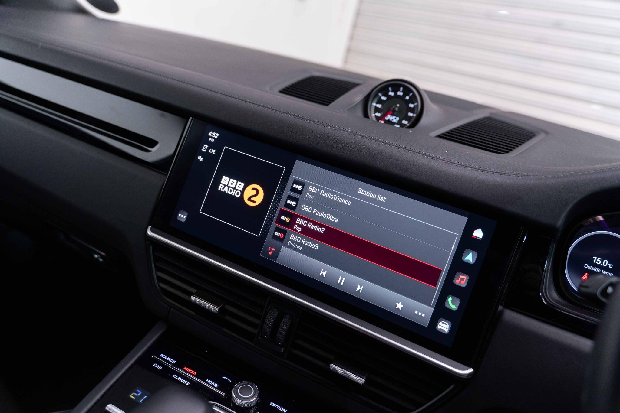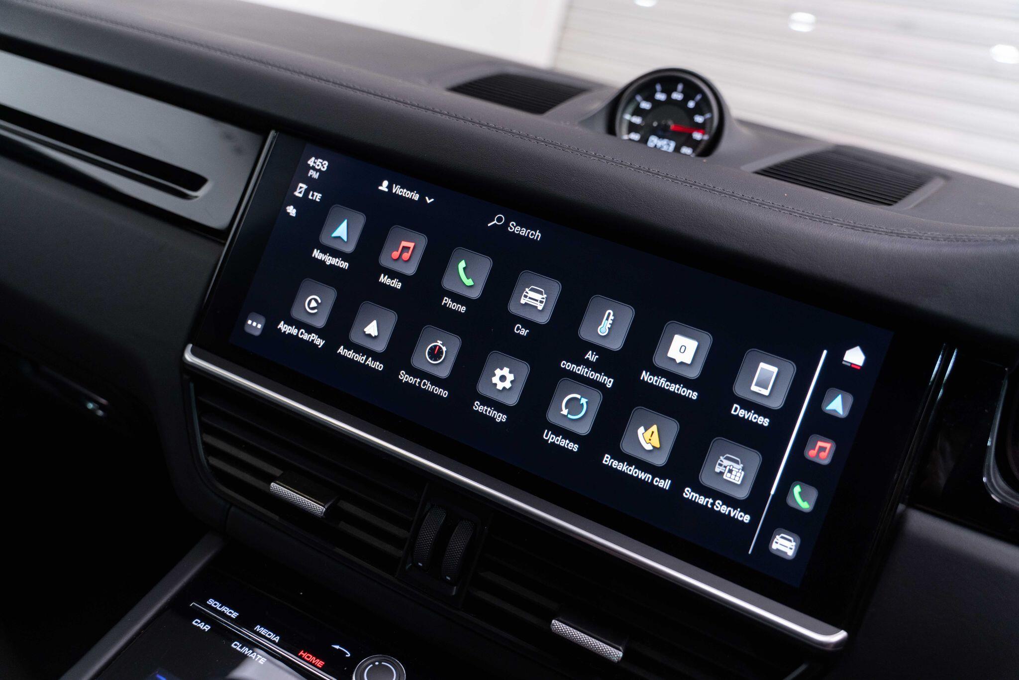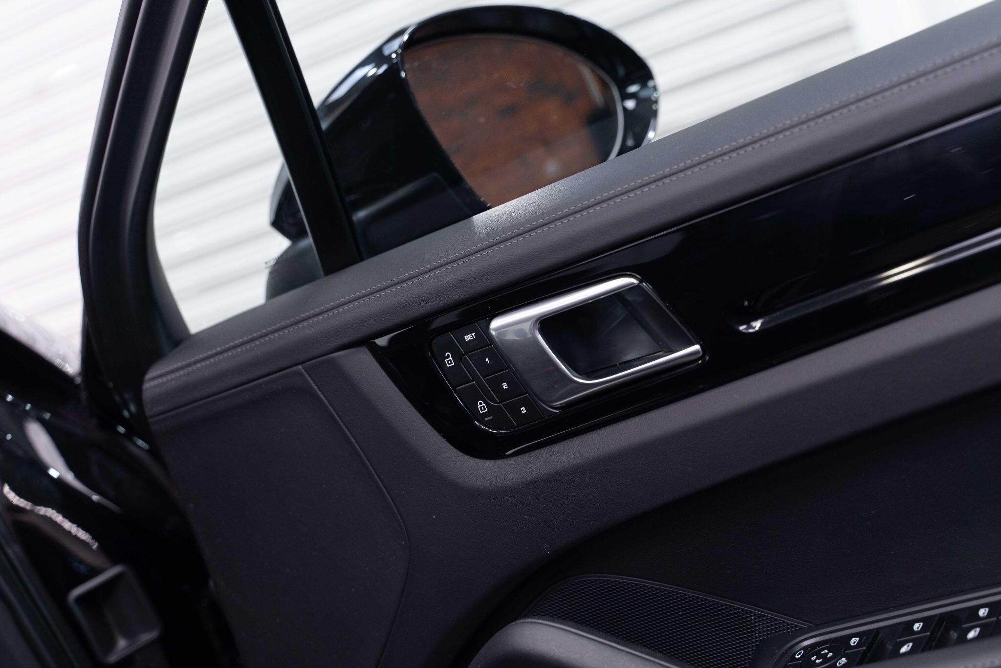 This 2022 Porsche Cayenne T V6 offers a compelling blend of performance and practicality, boasting a 3.0L petrol engine and four wheel drive for assured handling in all conditions. Finished in a sophisticated black, with the PORSCHE logo and model designation painted in black matt and high gloss black respectively, it presents a striking aesthetic. This Euro 6 compliant model is equipped with a host of desirable features, including ParkAssist with a 360 degree camera for effortless manoeuvring, an electrically extending towbar system for added versatility, and black aluminium roof rails.