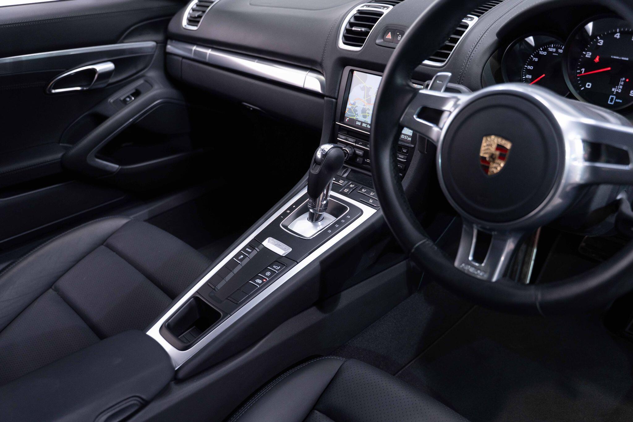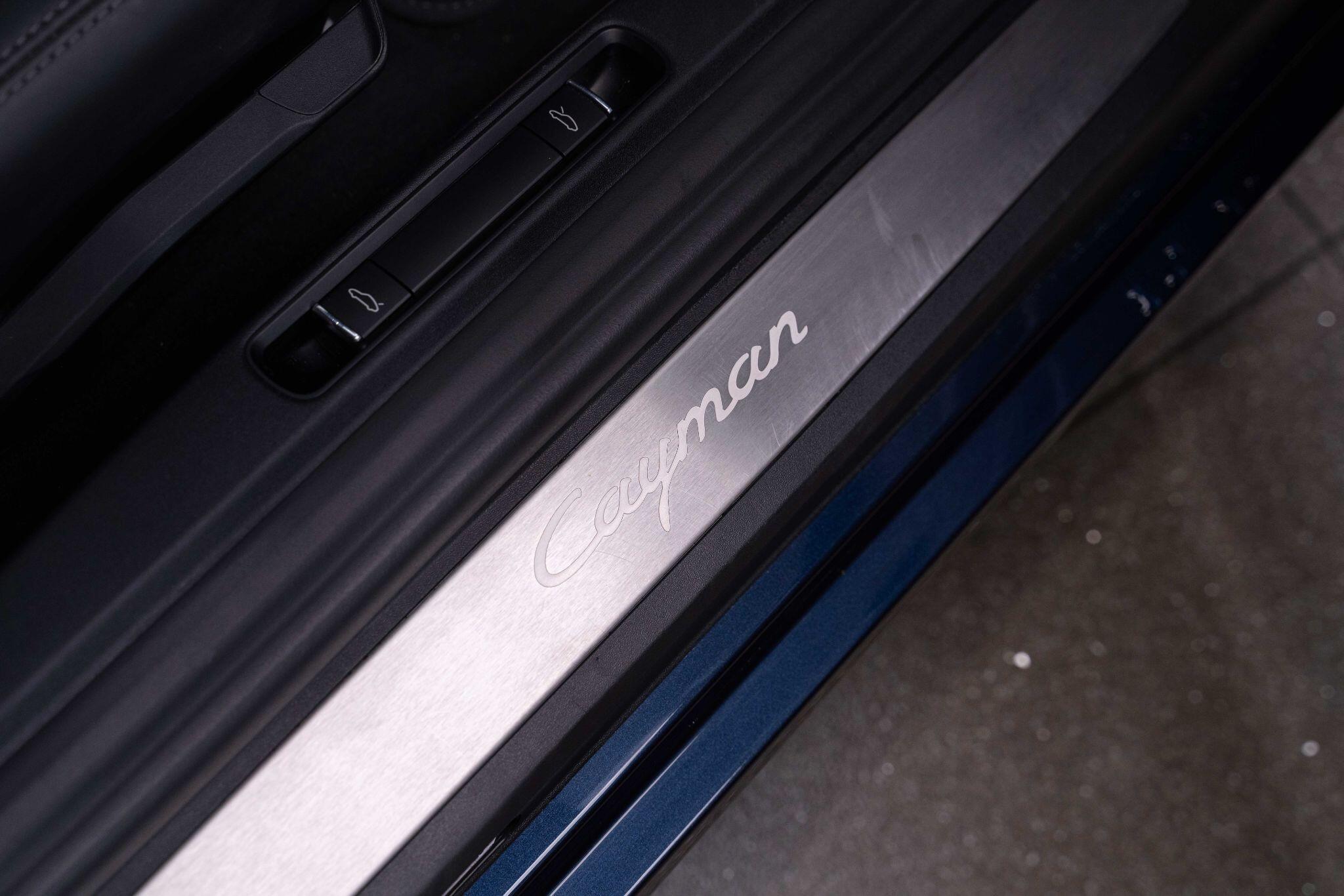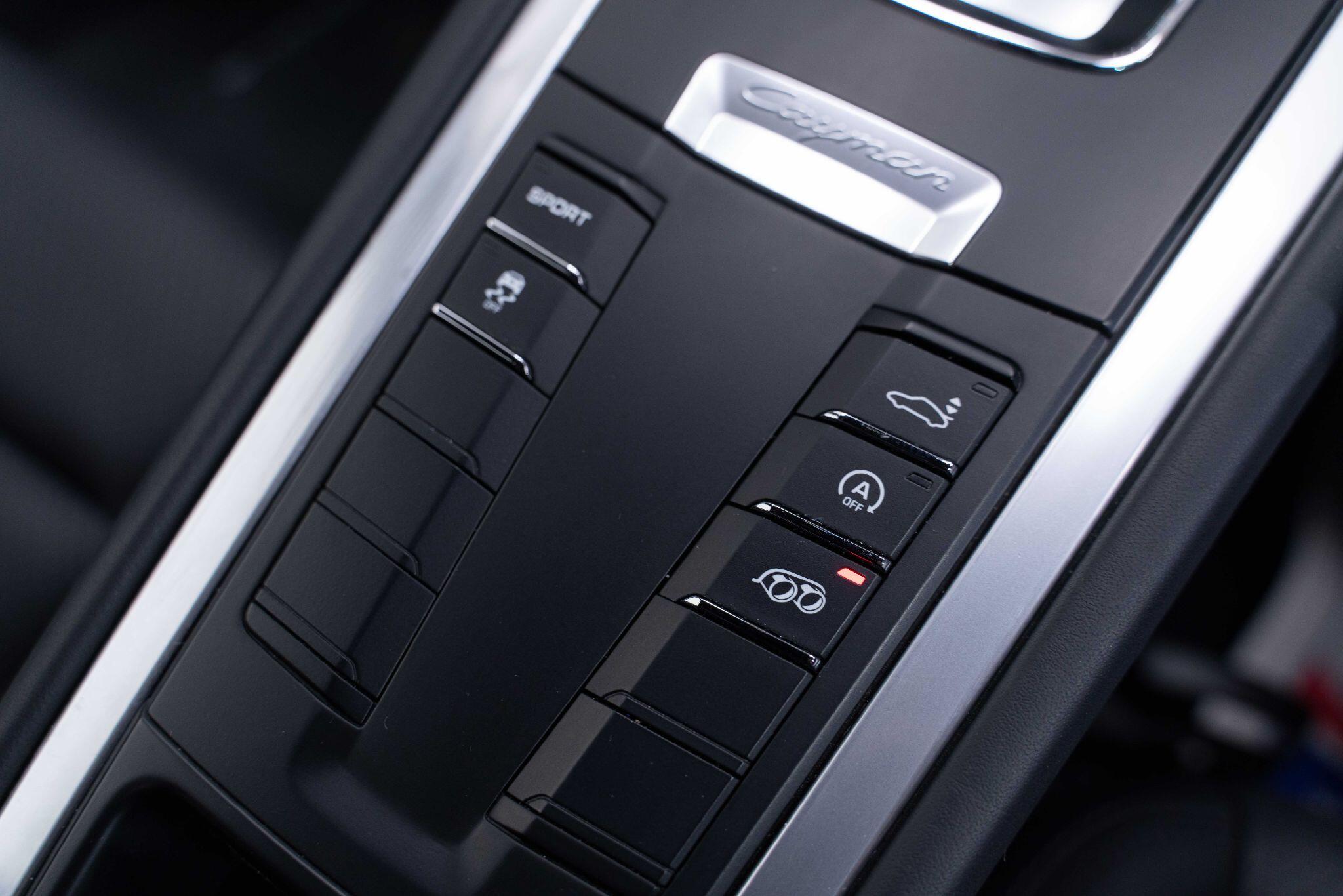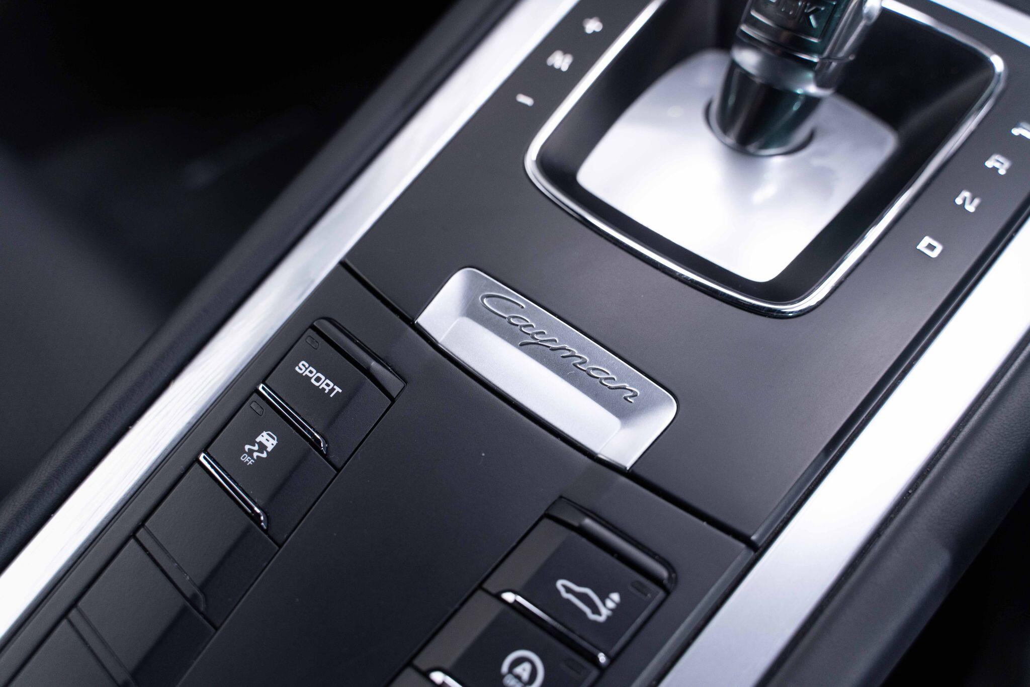 - Cayman Logotype in Front of Gear-Shift or PDK-Selector