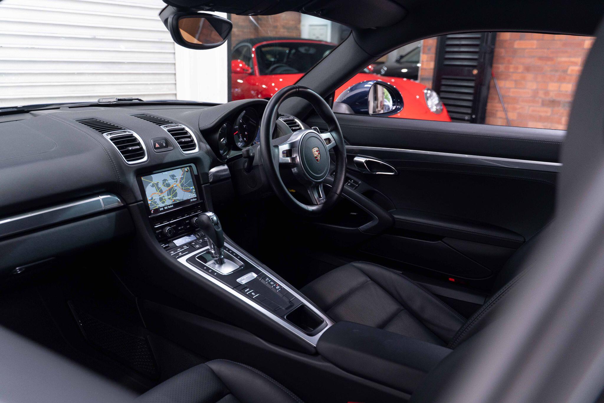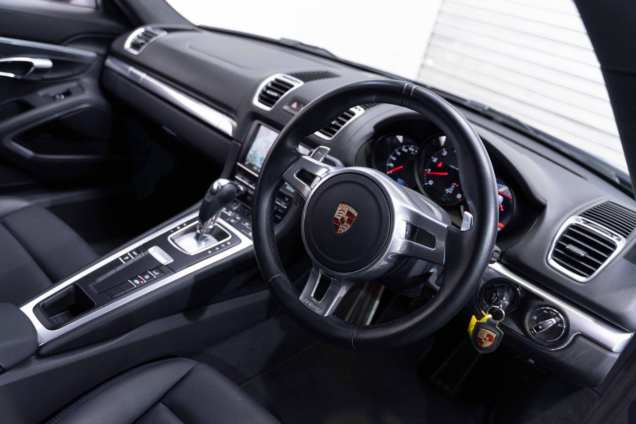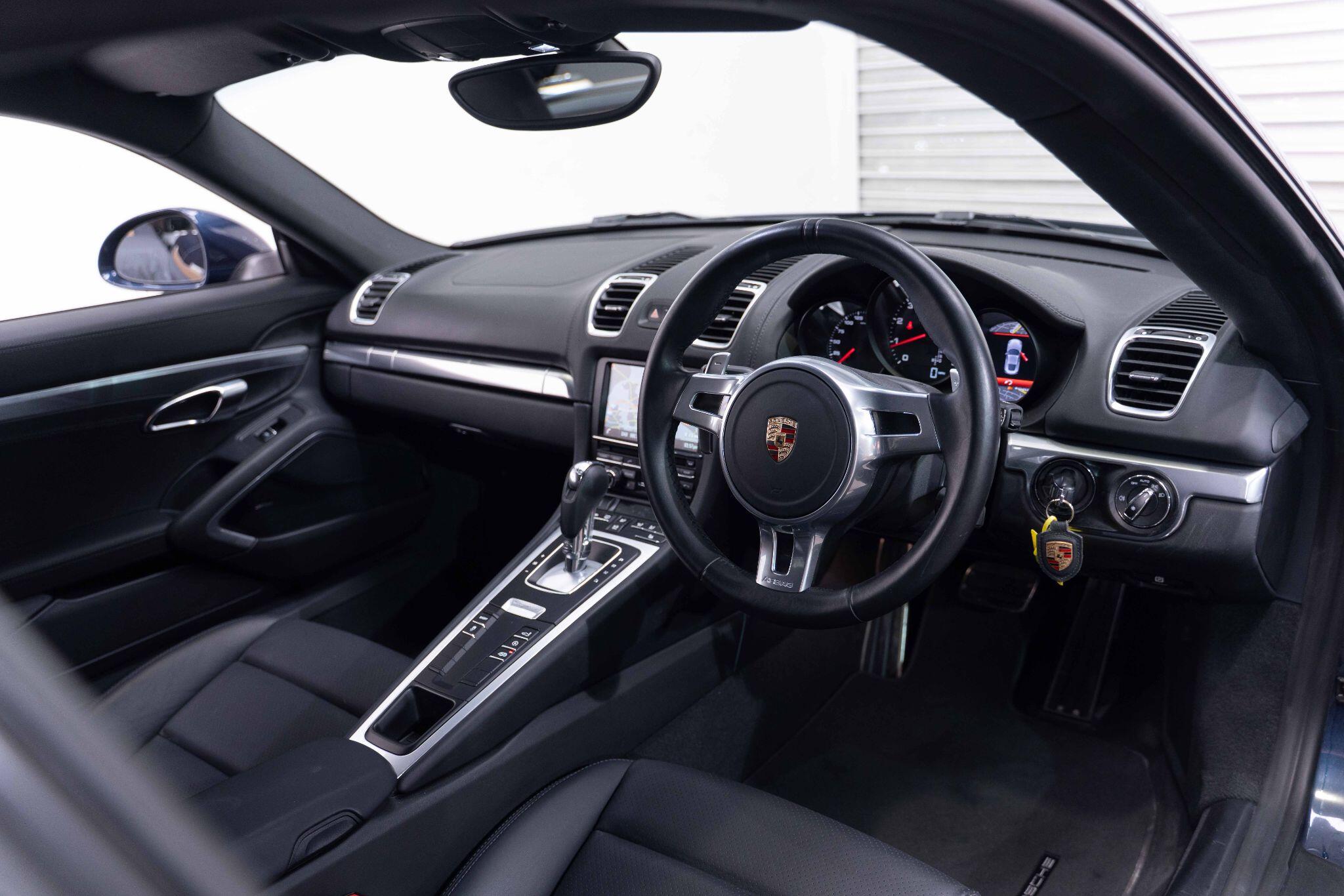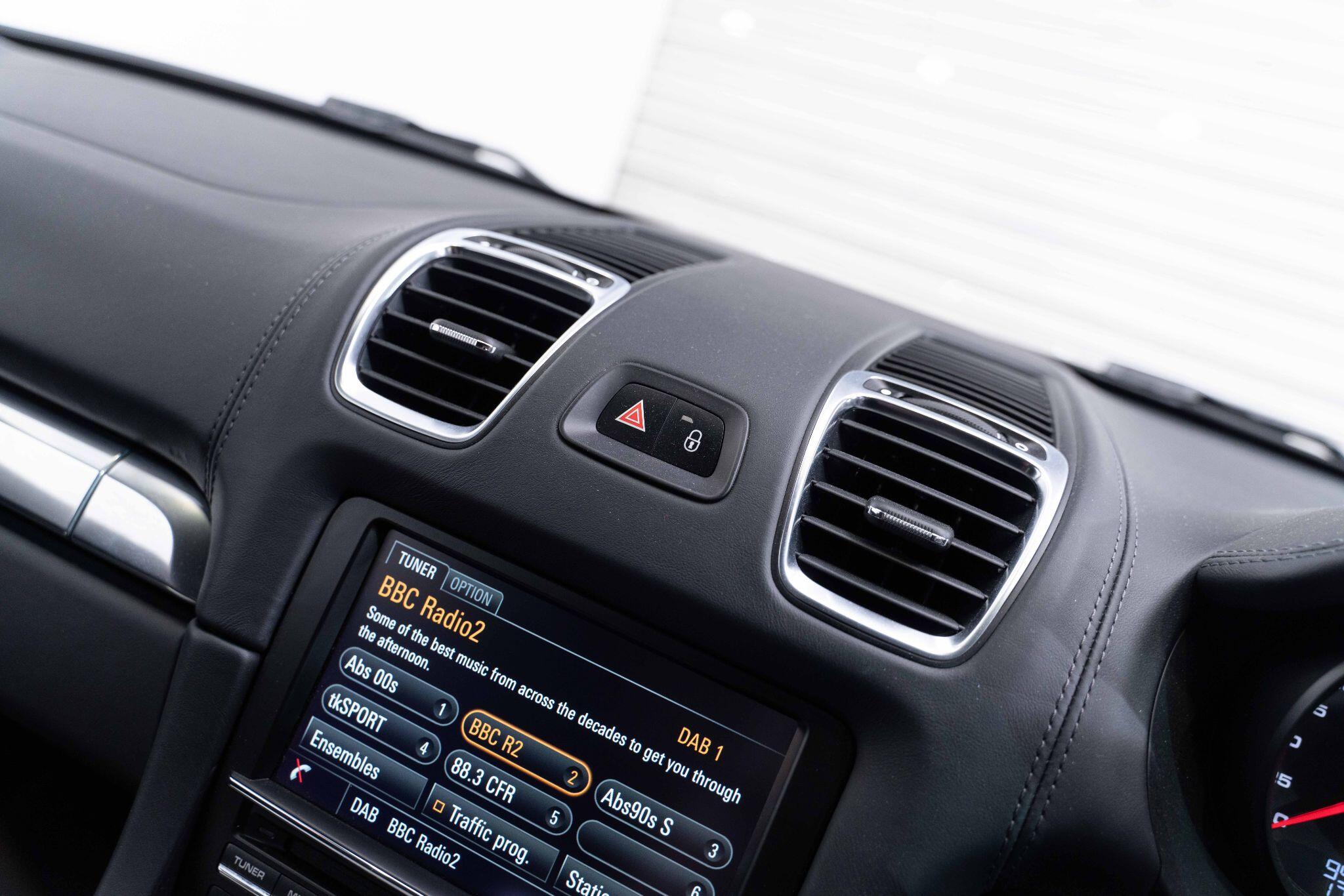 - Cayman Logotype in Front of Gear-Shift or PDK-Selector